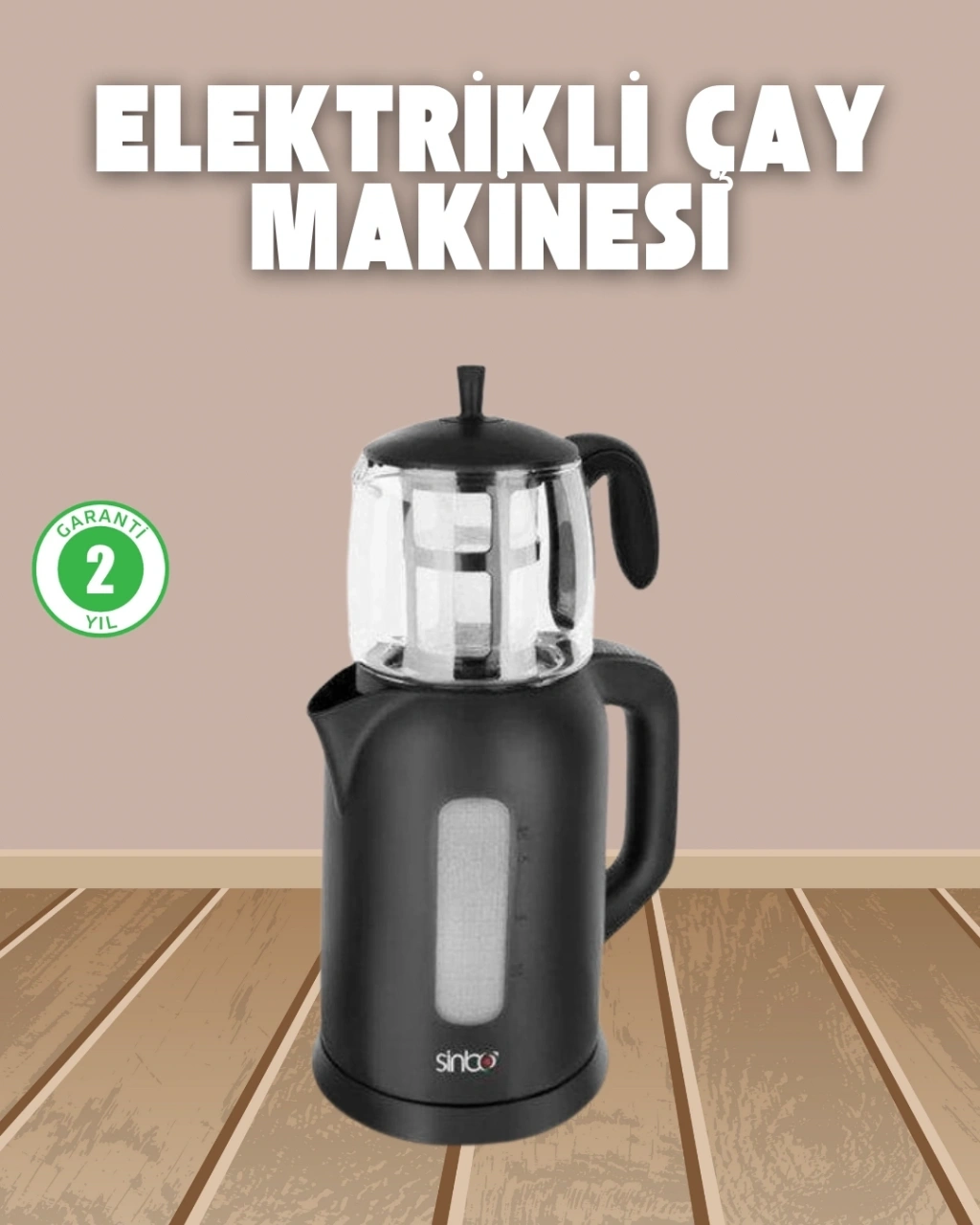 Sinbo Elektrikli Çay Makinesi 1.7 L Su Isıtıcı ve Cam Demlikli Güvenli Kullanım
