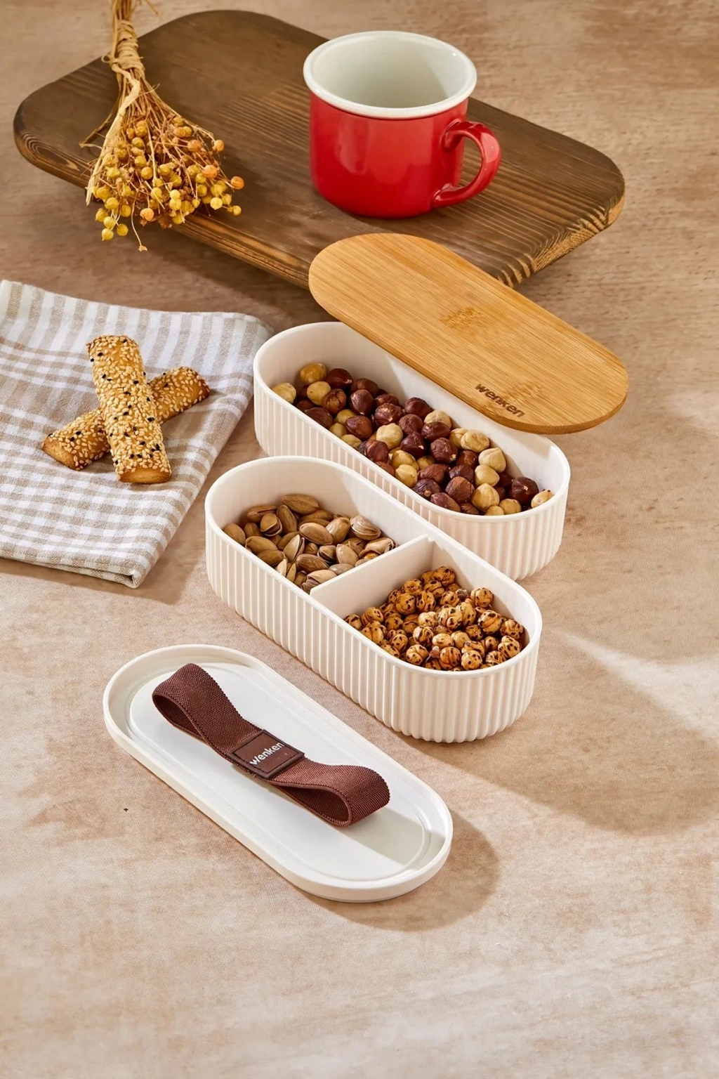 1000ml Ahşap Kapaklı Lunch Box 2'li Set Diyet Beslenme Kutusu Bambu Saklama Kabı