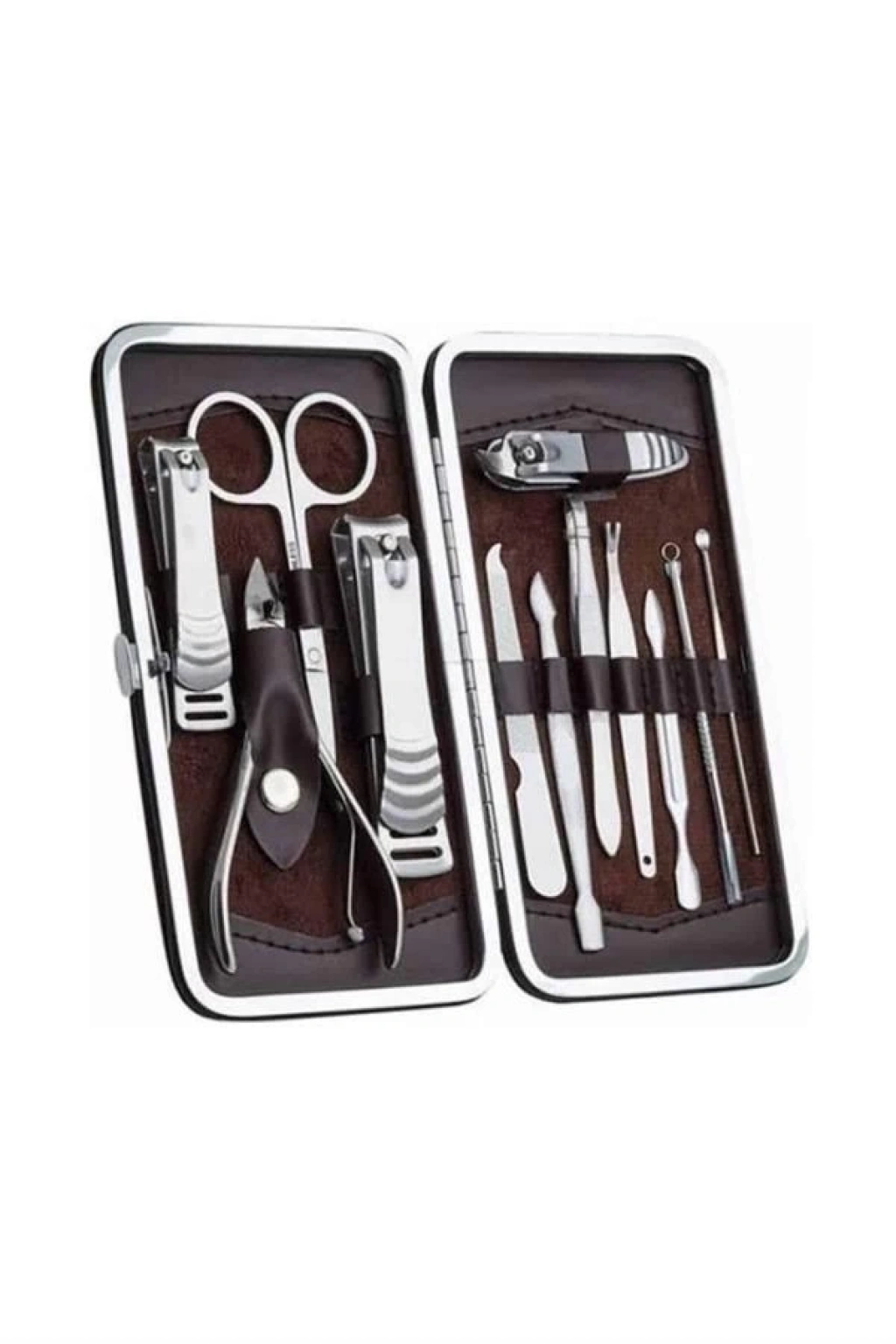 Özel Deri Çantalı 12 Parça Manikür Pedikür Bakım Seti Paslanmaz Çelik