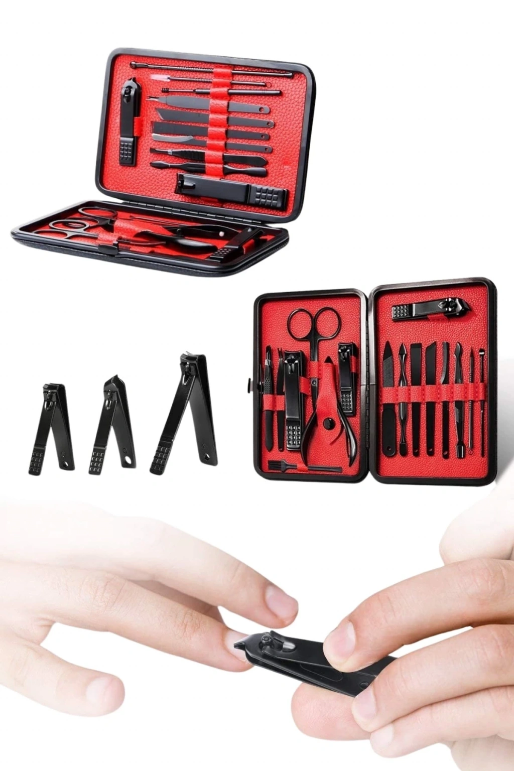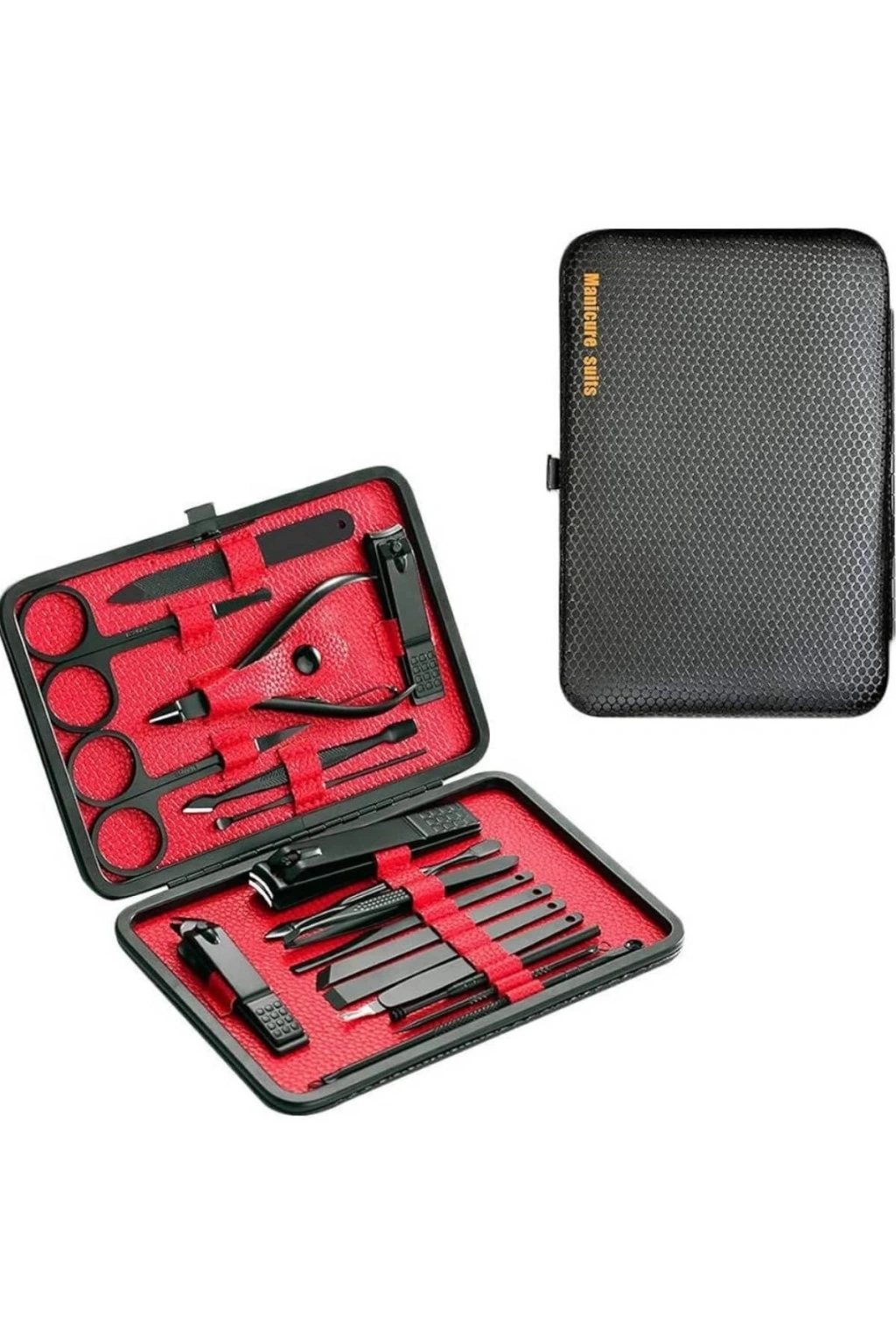 17 Parça Profesyonel Manikür Pedikür Seti Paslanmaz Çelik Siyah Kutu