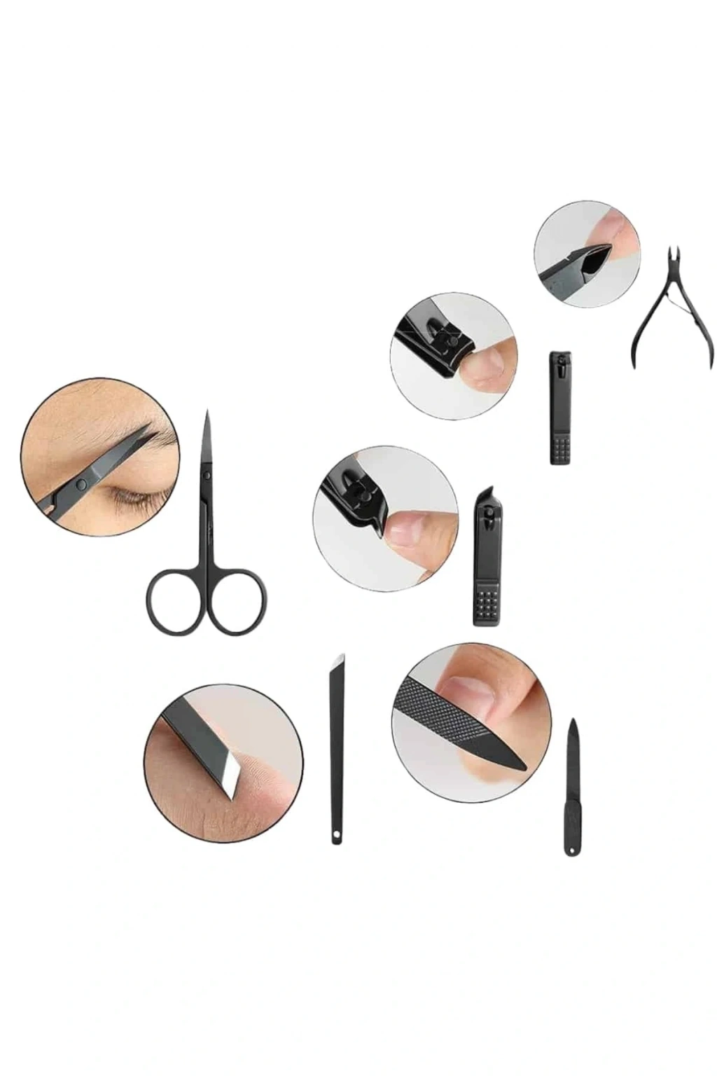 17 Parça Profesyonel Manikür Pedikür Seti Paslanmaz Çelik Siyah Kutu