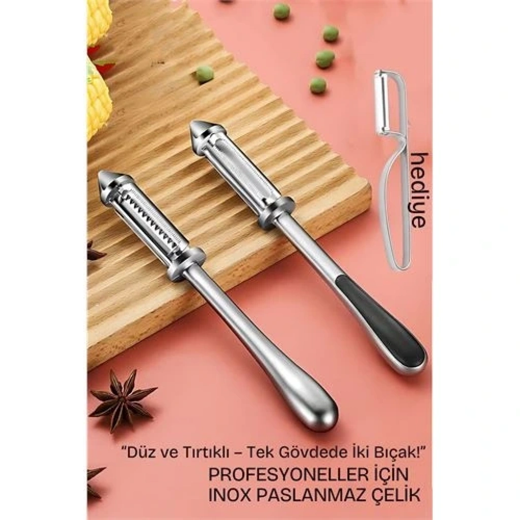 2 lı Inox Paslanmaz Çelik Sebze Soyacak | Düz ve Tırtıklı | Çok Amaçlı Kullanım