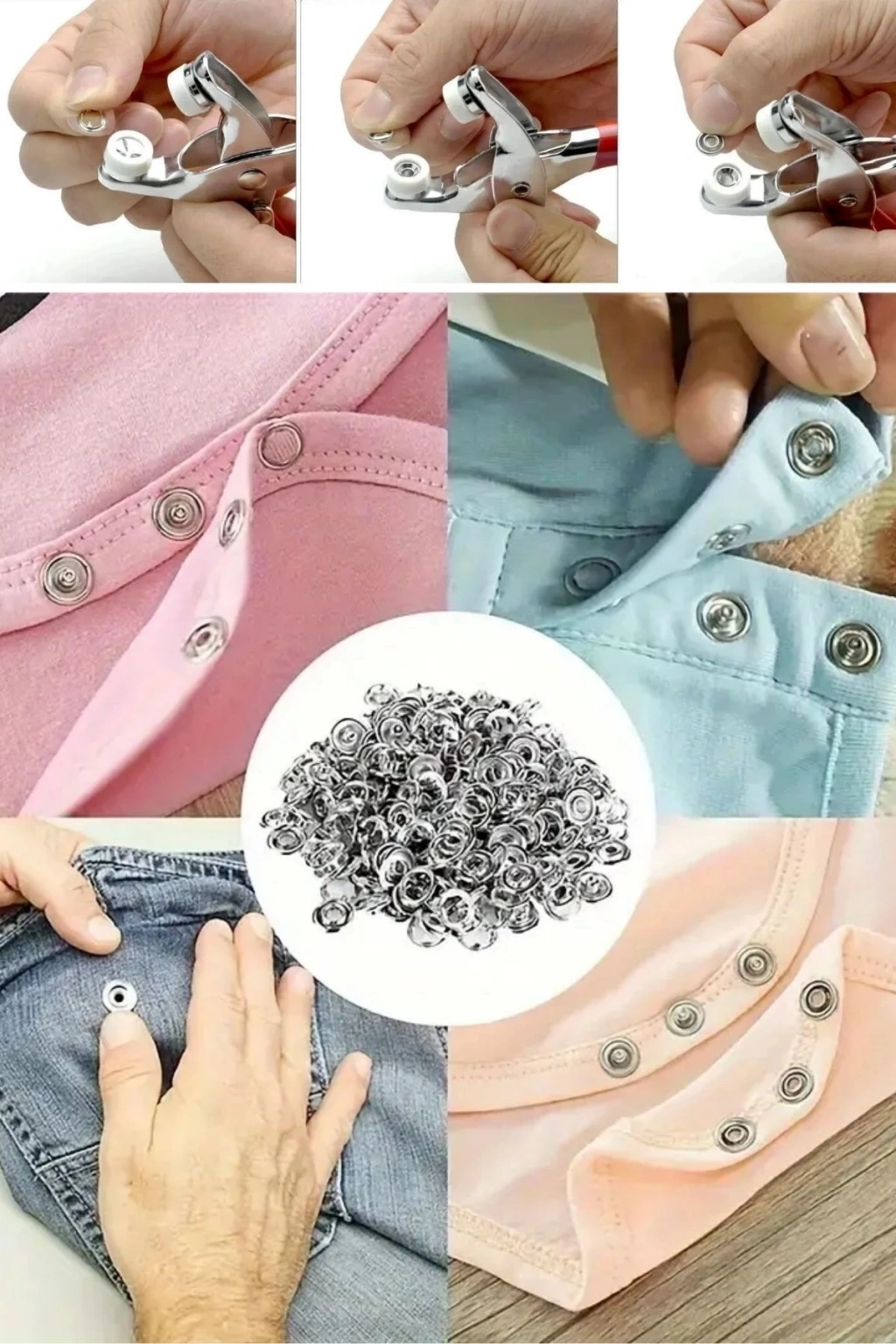 200 Adet Paslanmaz Çelik Çıtçıt Ve Pense Seti Metal Çıt Çıt Makinesi