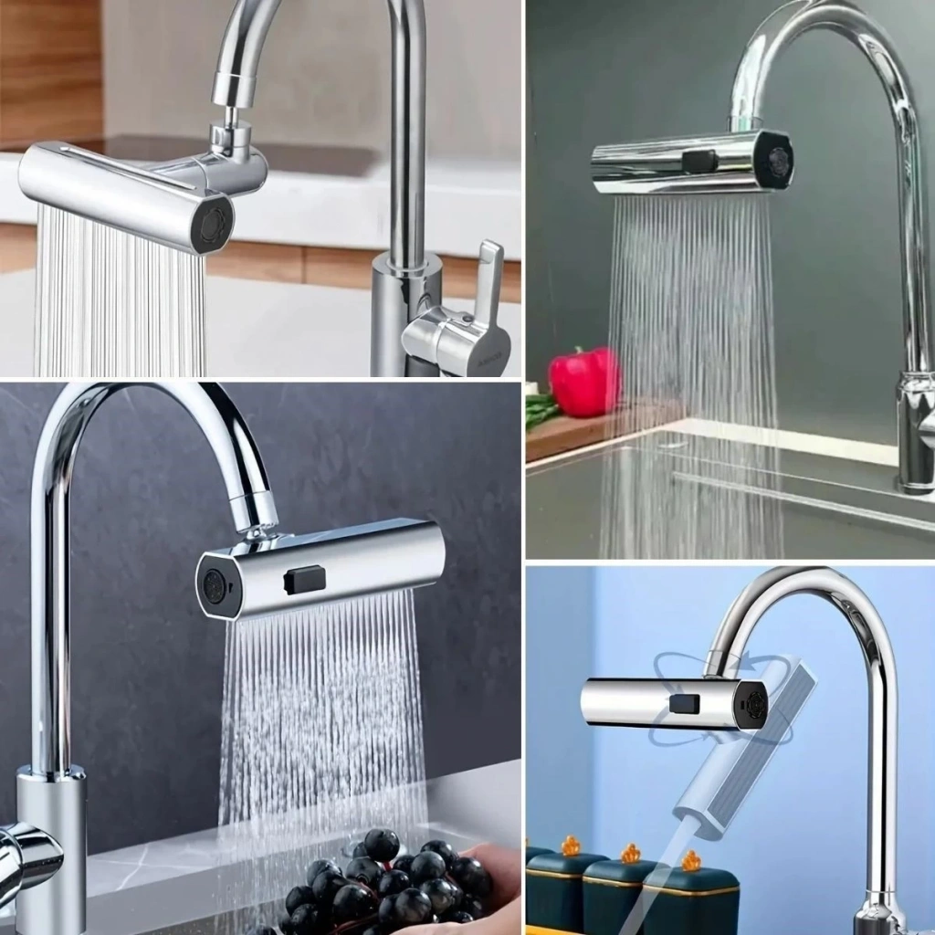 Çift Su Akış Modlu Musluk Başlığı – 360° + 720° Tam Dönebilen 3 Kollu Yapı