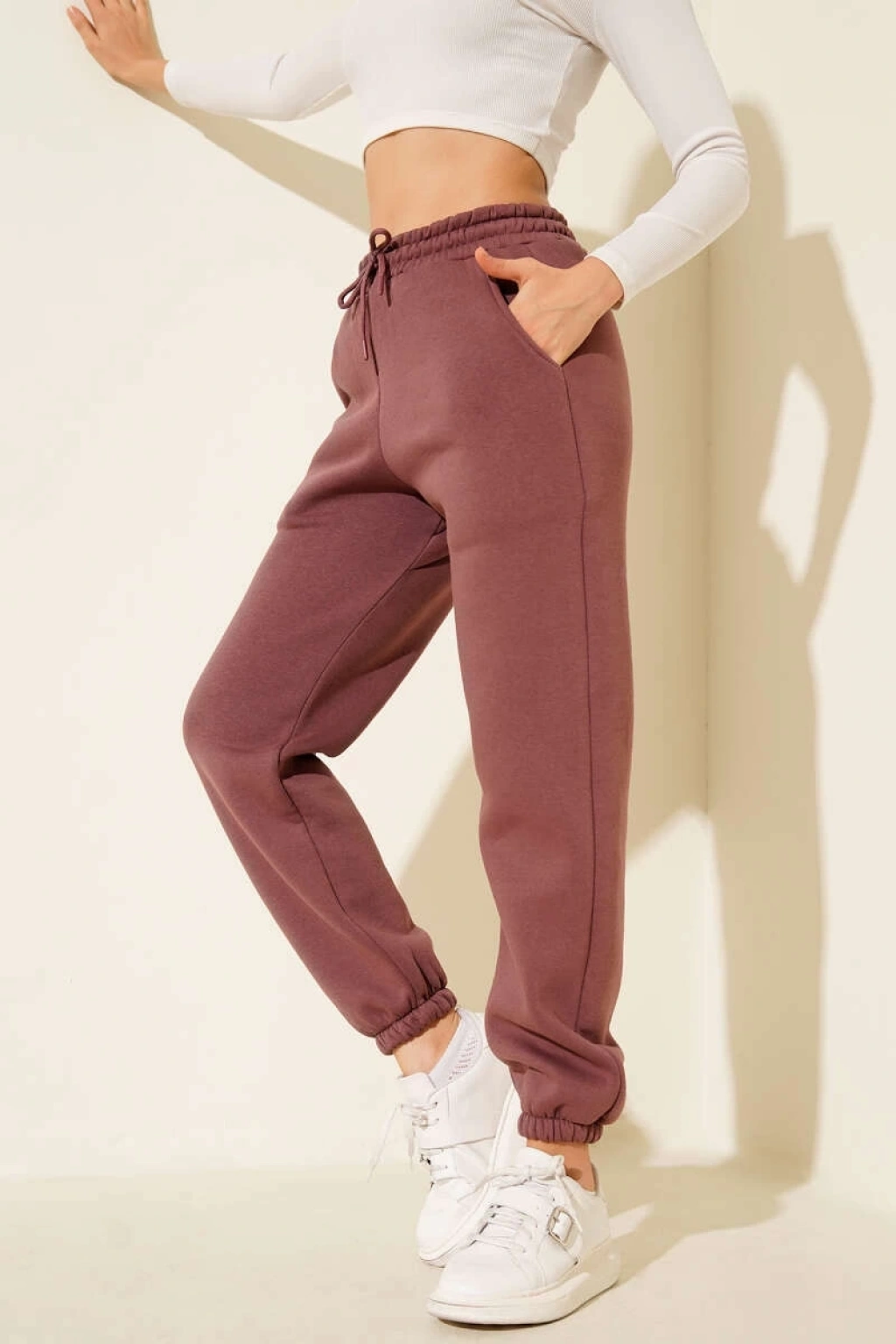3 iplik şardonlu paça lastikli eşofman vizon is001