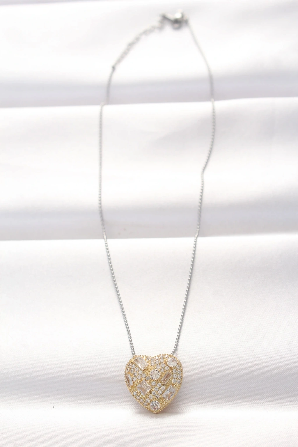 316L Çelik Çift Renk Zirkon Taşlı Kalp Kolye