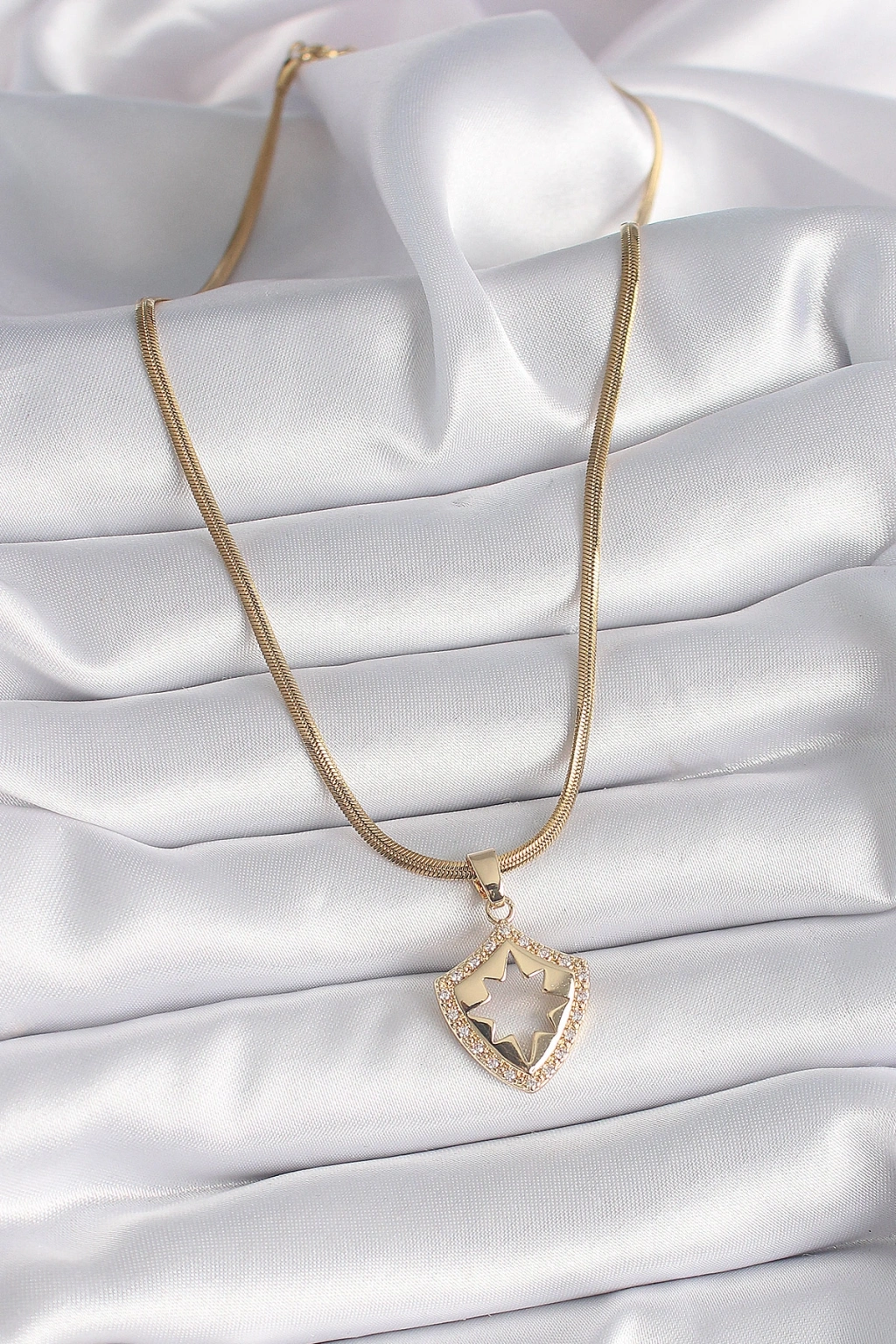 Zirkon Taşlı Kutup Yıldızı Model Pirinç Gold Renk Kadın Kolye