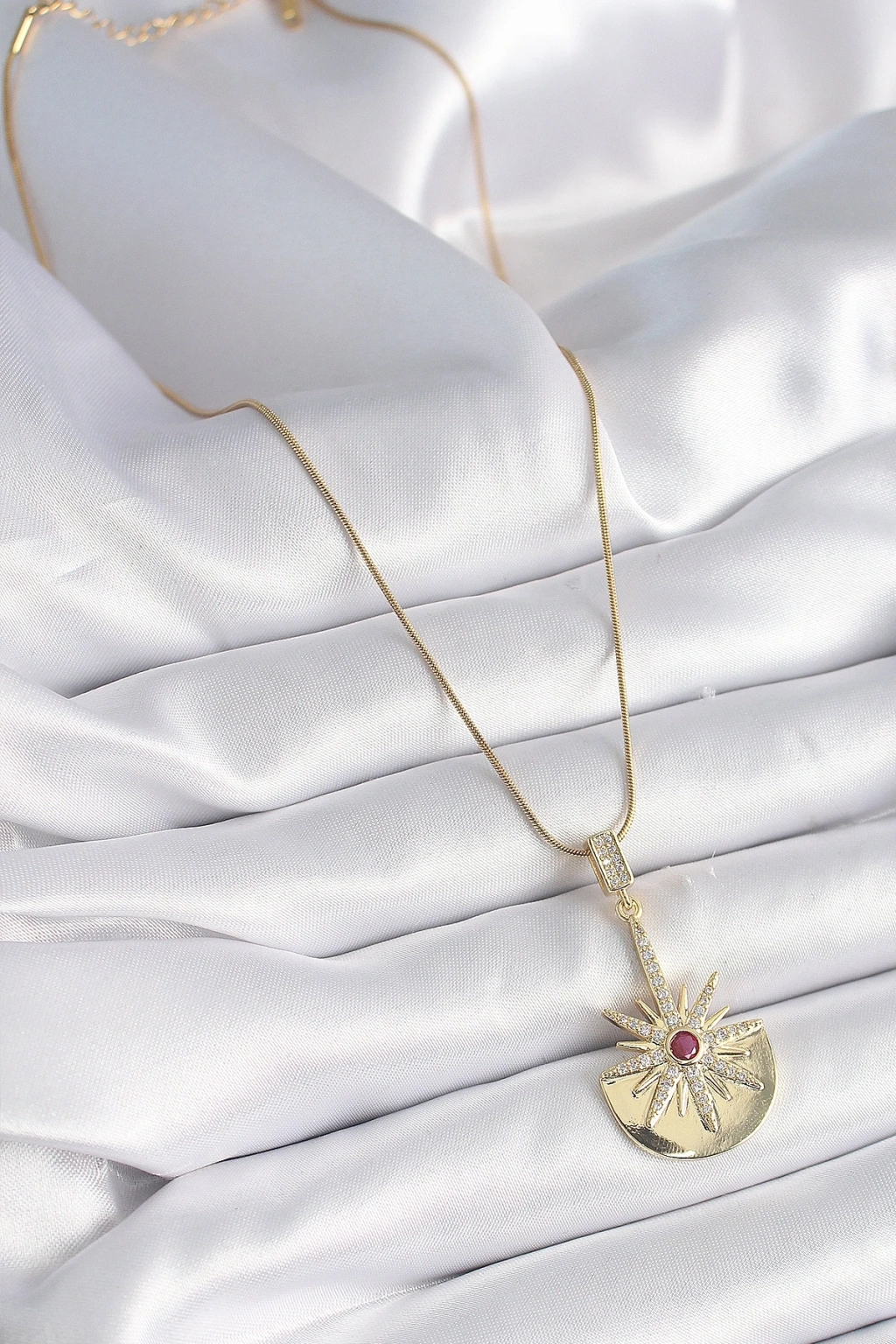 Zirkon Taşlı Kutup Yıldızı Model Pirinç Gold Renk Kadın Kolye