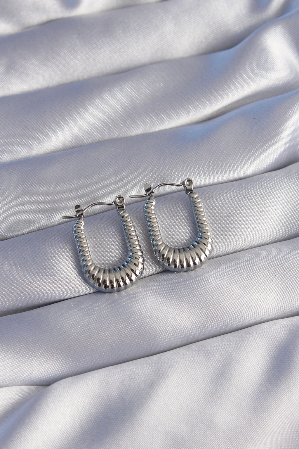 316L Çelik Gümüş Renk Dikdörtgen Tasarımlı Tırtıklı Küpe