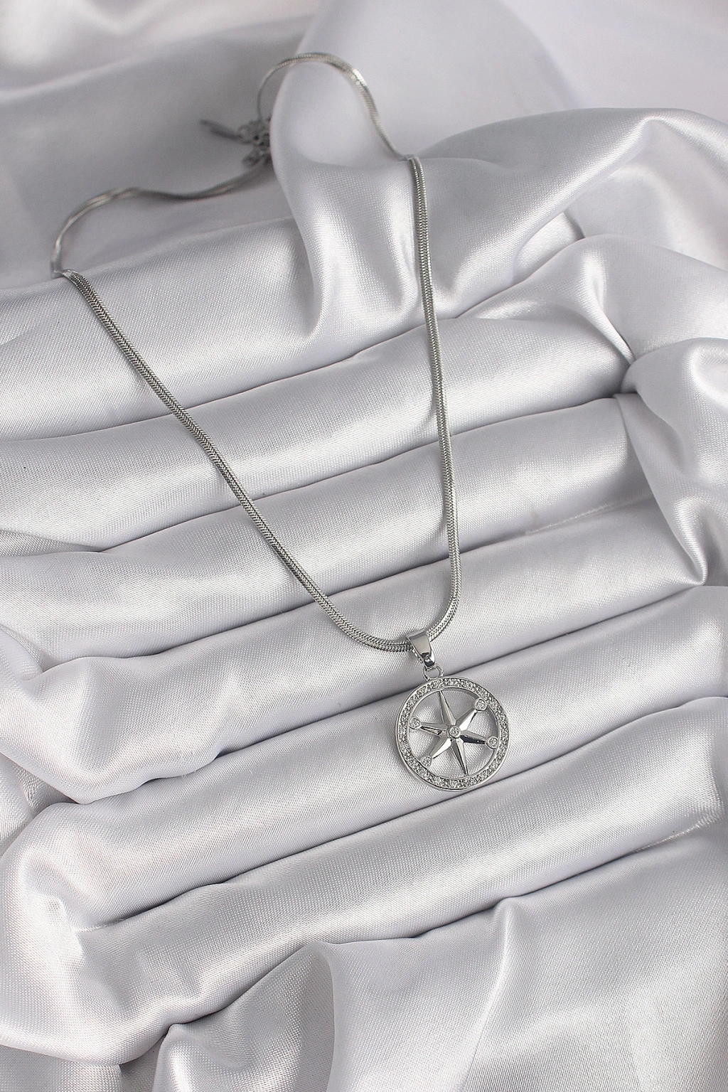 Pirinç Gümüş Renk Zirkon Taşlı Kutup Yıldızı Model Kadın Kolye