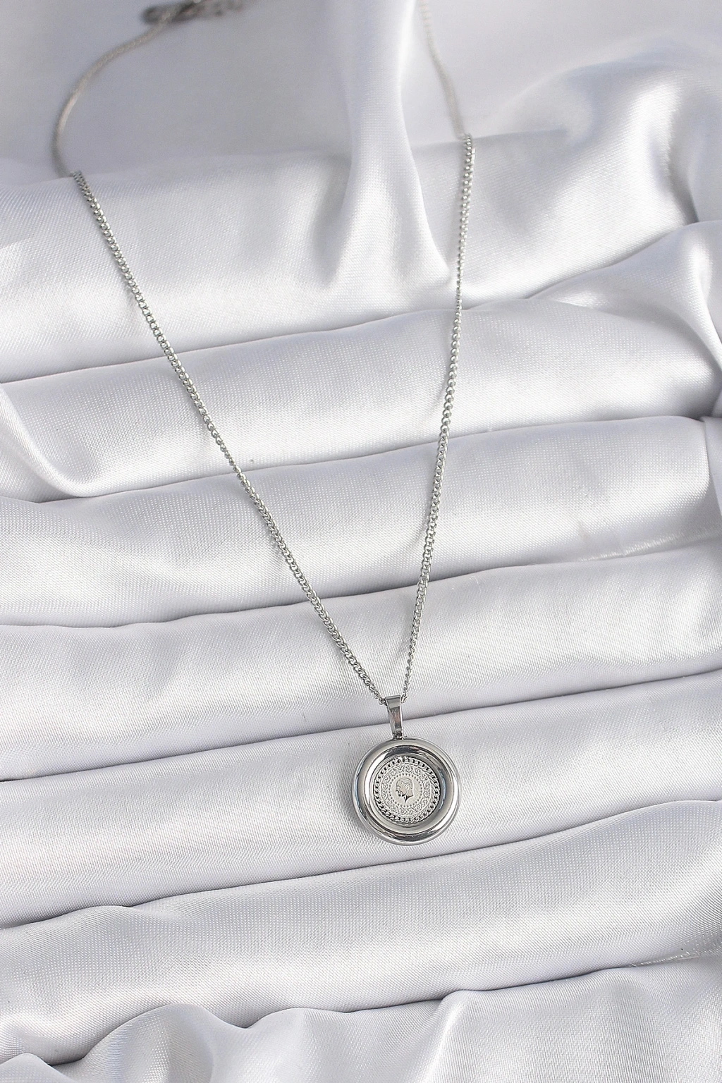 Pirinç Gümüş Renk Güneş Model Kadın Kolye