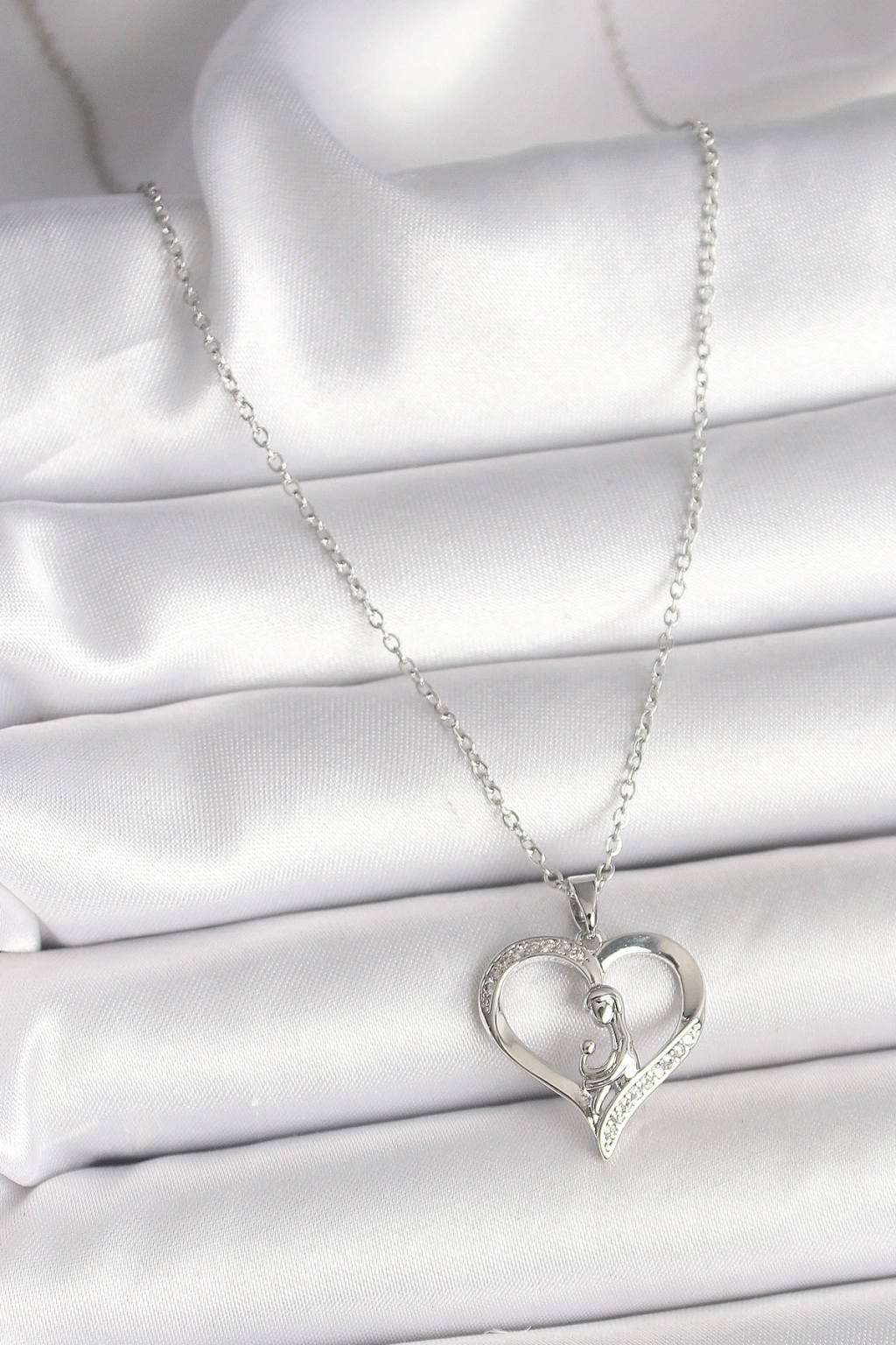 Pirinç Gümüş Renk Kalp Model Kadın Kolye