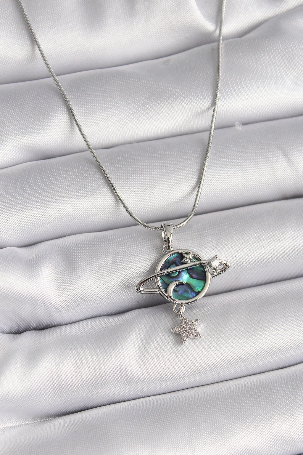 316L Çelik Gümüş Renk Zincir Zirkon Taşlı Gezegen Model Kadın Kolye