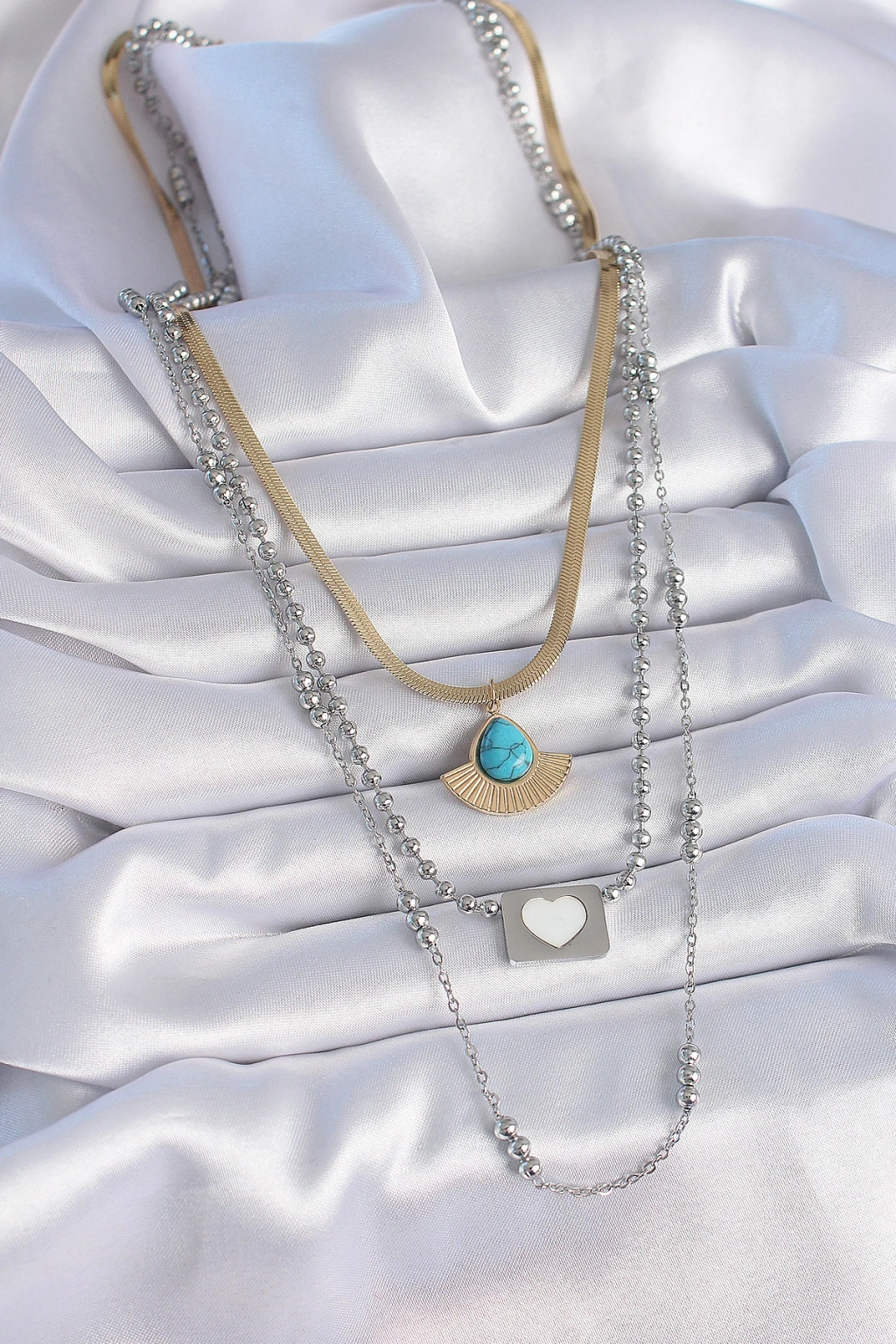 316L Çelik Mix Renk 3'lü Zincir Damla Madalyon Figür Uzun Kadın Kolye