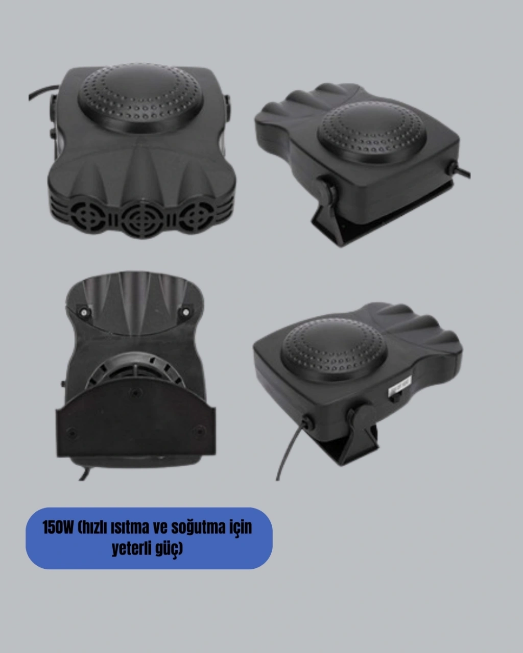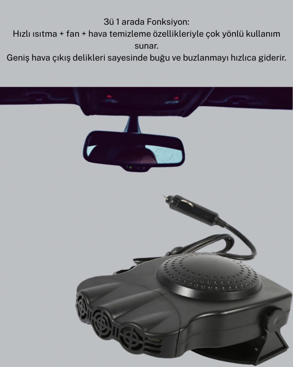 3’ü 1 Arada Araç İçi Isıtıcı ve Fan 150W Güçlü ve 360° Dönebilen Başlıklı