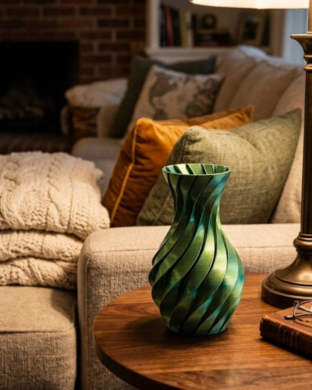 3D Spiral Yeşil Vazo Modern Tasarım Dekoratif Ev ve Ofis Aksesuarı