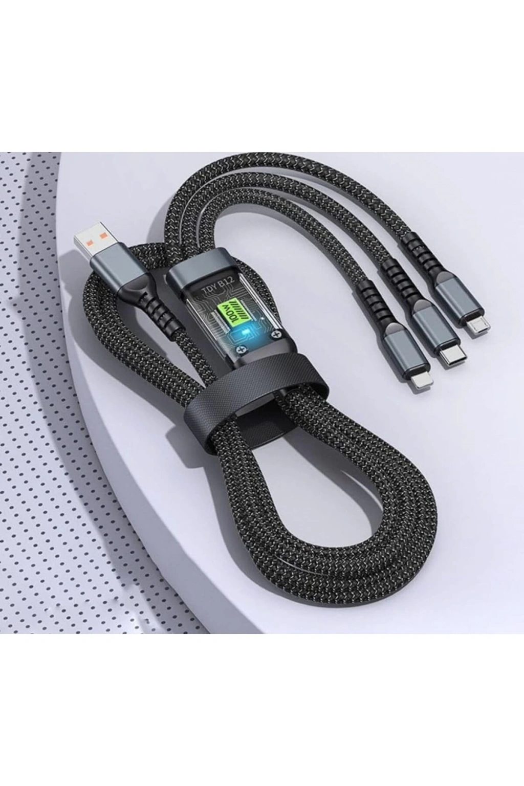 3in1 100w Hızlı Şarj Ve Data Kablosu, 1.2m Halat Örgü Kırılmaz Uç, Usb-c Lightning Micro Uyumlu, Dayanıklı Çoklu Cihaz Şarj Kablosu