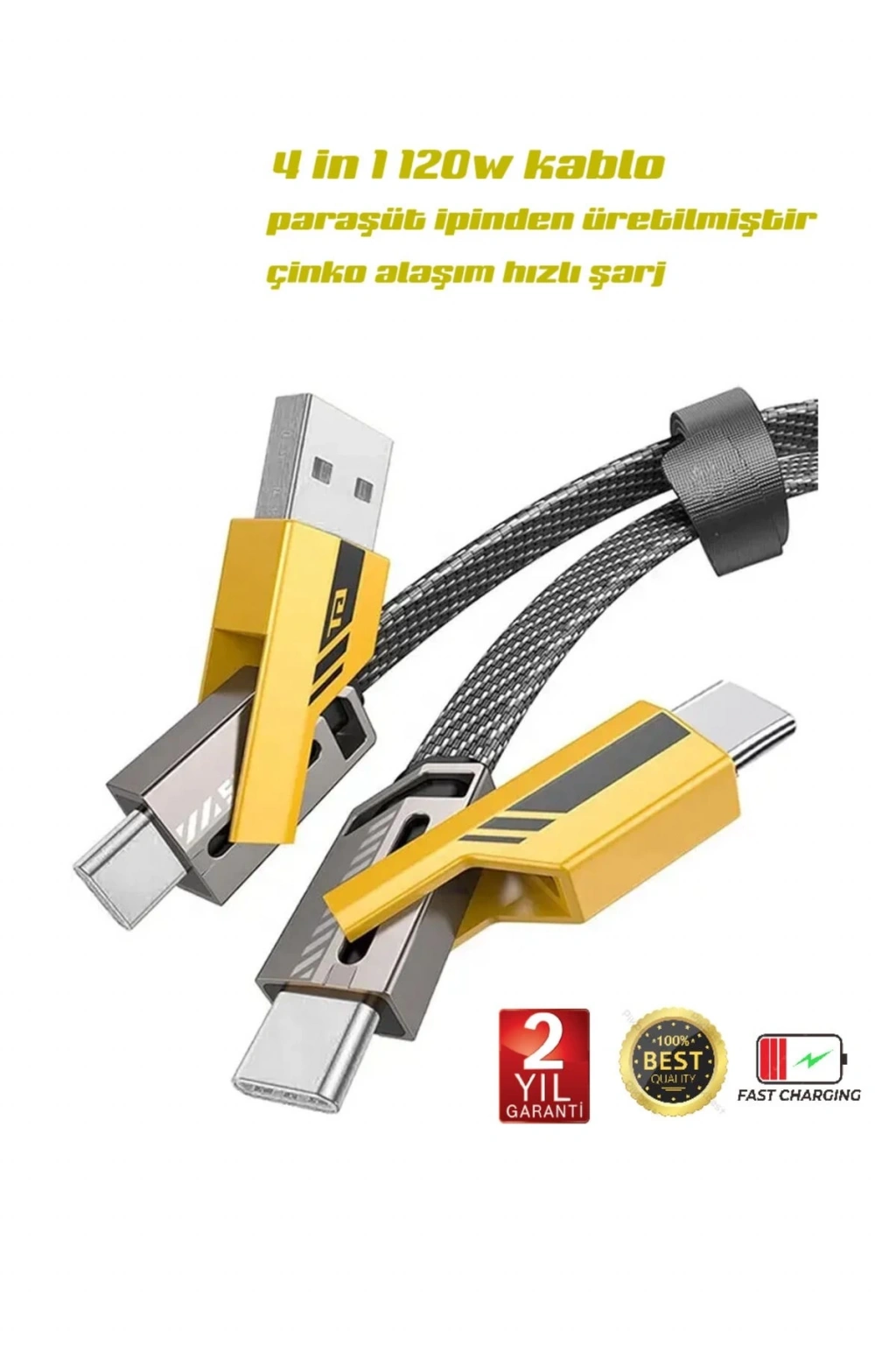 3’ü 1 Arada Kablo – 120W Hızlı Şarj ve Veri Aktarımı Özellikli