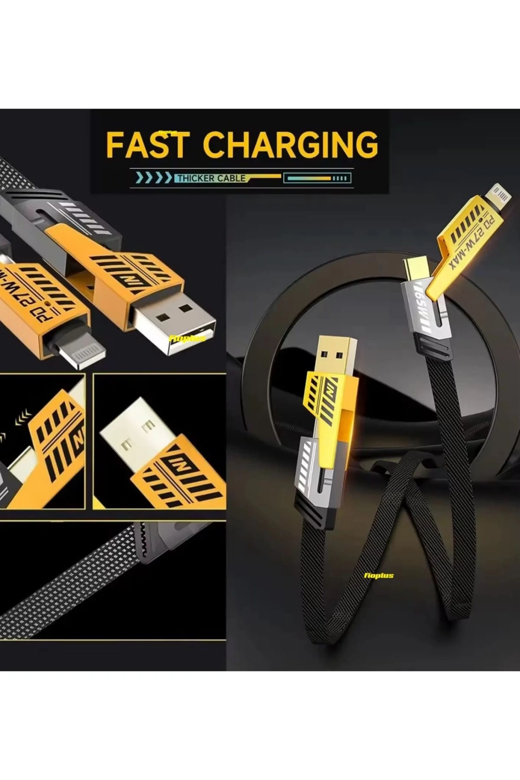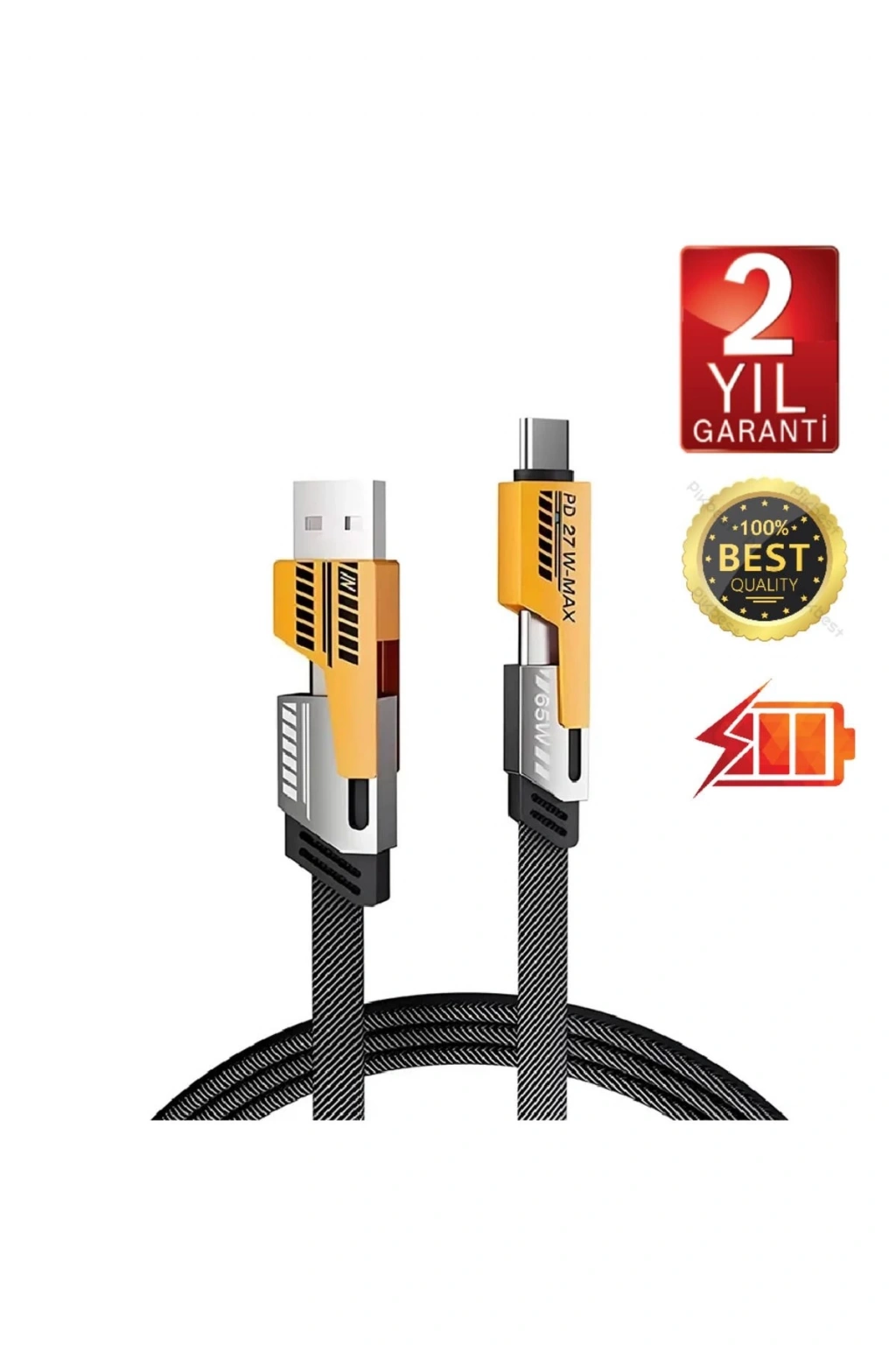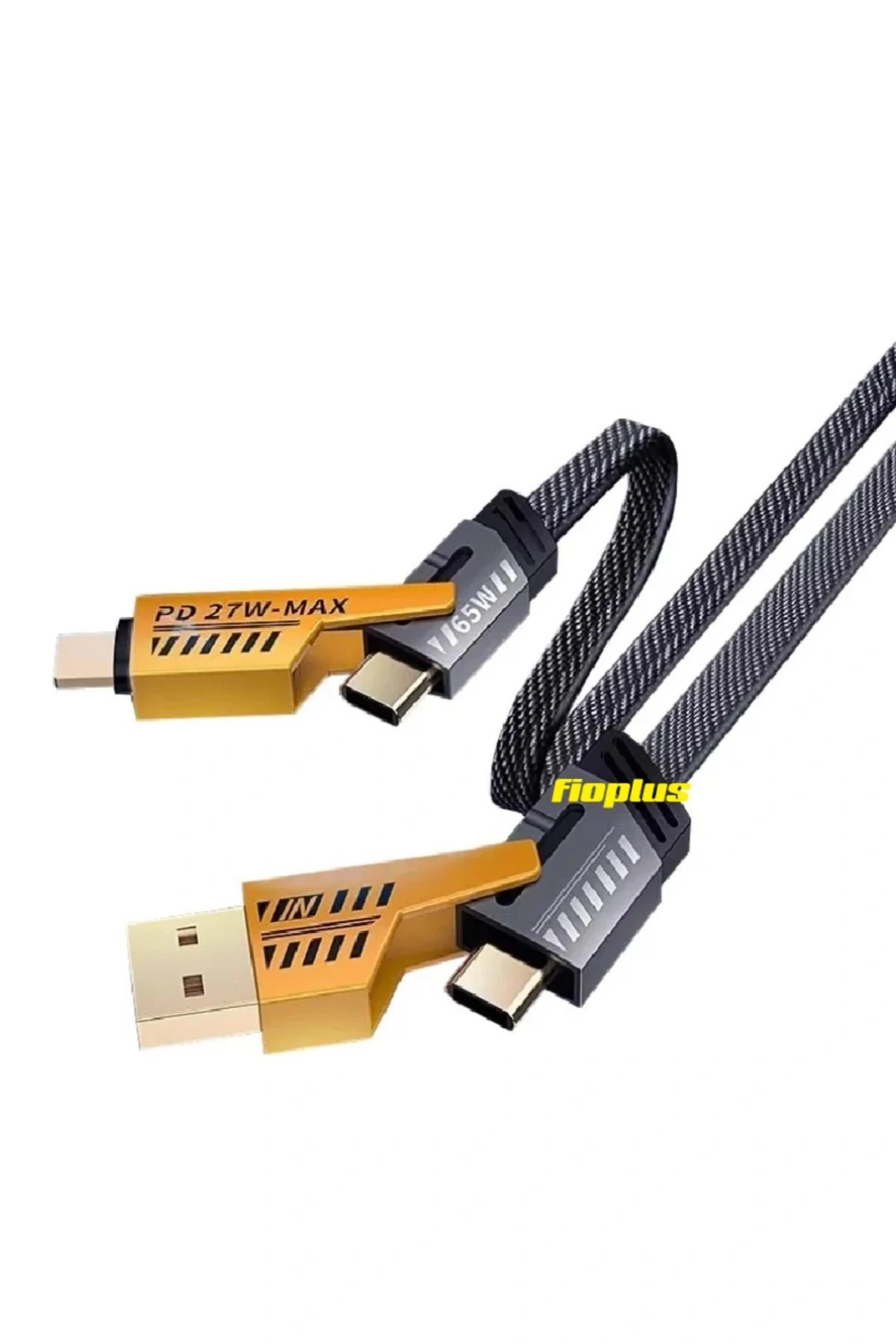 4in1 PD 65 Watt Type-C/27 Watt iPhone Halat Örgü Kırılmaz Uç 1MT Hızlı Şarj ve Data Kablosu fp98