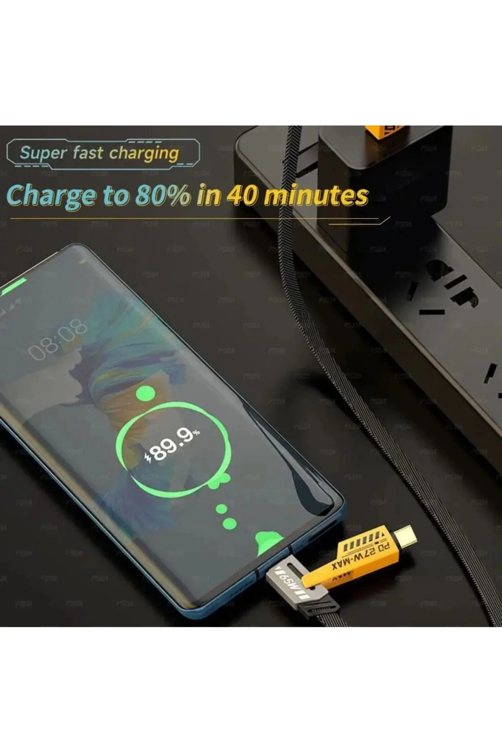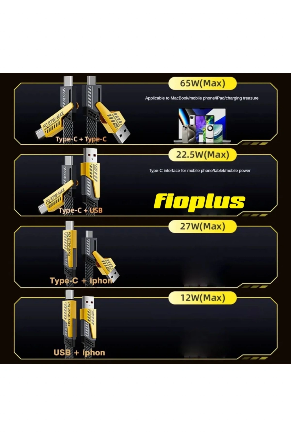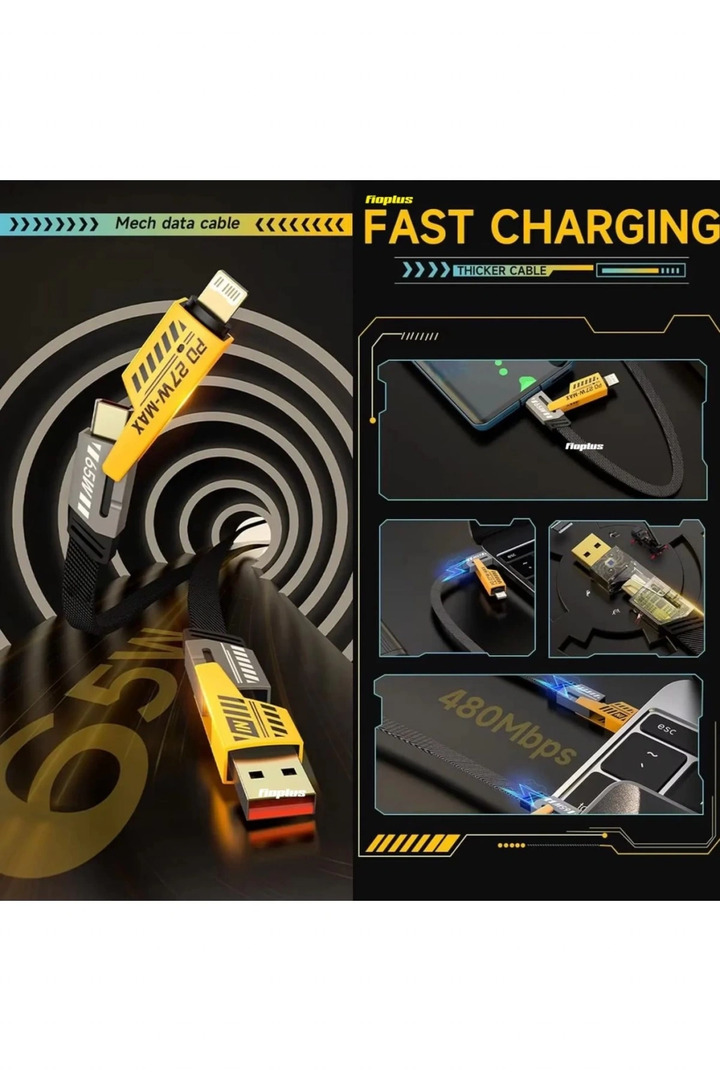 4in1 PD 65 Watt Type-C/27 Watt iPhone Halat Örgü Kırılmaz Uç 1MT Hızlı Şarj ve Data Kablosu fp98