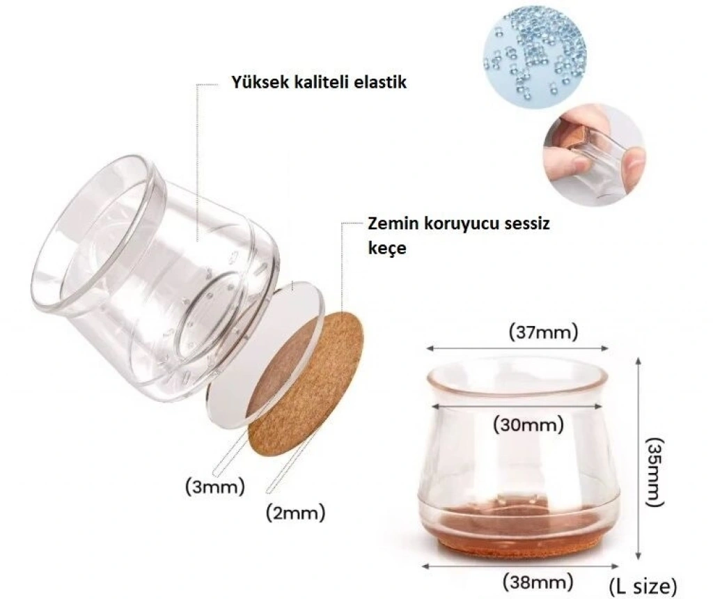 4'lü Keçeli Şeffaf Silikon Sandalye Ayak Koruyucu Seti