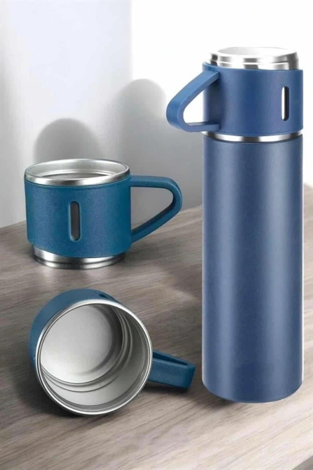 Isıyı Uzun Süre Koruyan 500 ml Termos Seti | Çelik Gövde, 2 Bardaklı, Hediye Kutulu