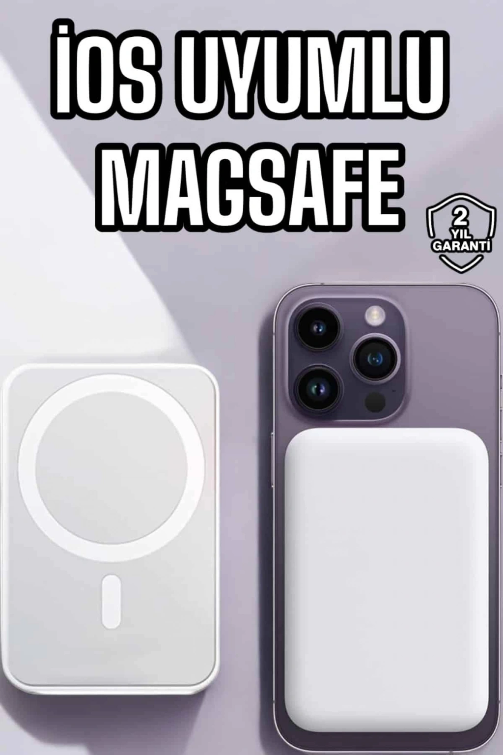 5000 Mah İOS Uyumlu Magsafe Kablosuz Şarj Hızlı Şarj Desteği