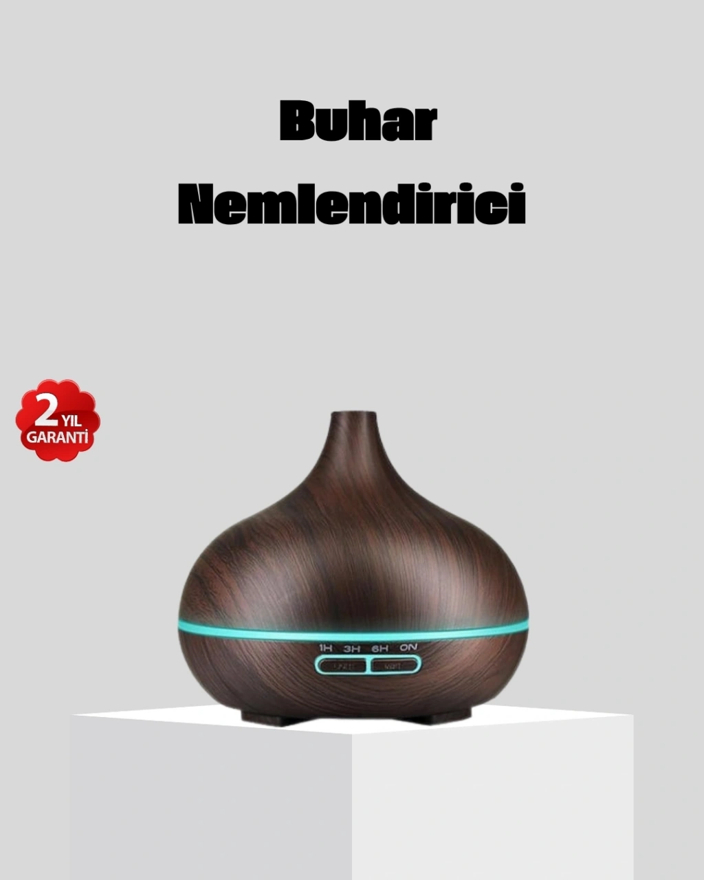 Aromaterapi Difüzör Ahşap Desenli ve Ultrasonik Nemlendirici LED Işıklı