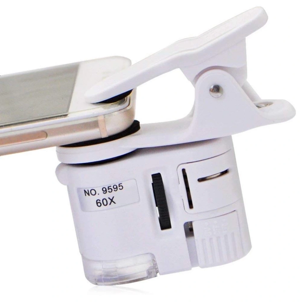 Cep Telefonları için özel  bir mikroskop Mandalı ile Kamera lensine kolayca bağlanabilir.
