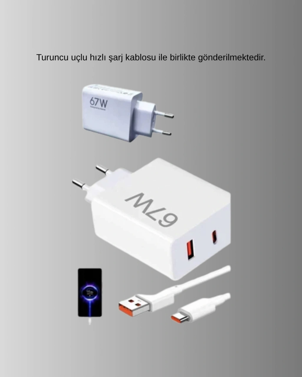 67W Süper Hızlı Şarj Adaptörü ve Kablo Seti – Güvenli, Kompakt ve Ergonomik Tasarım