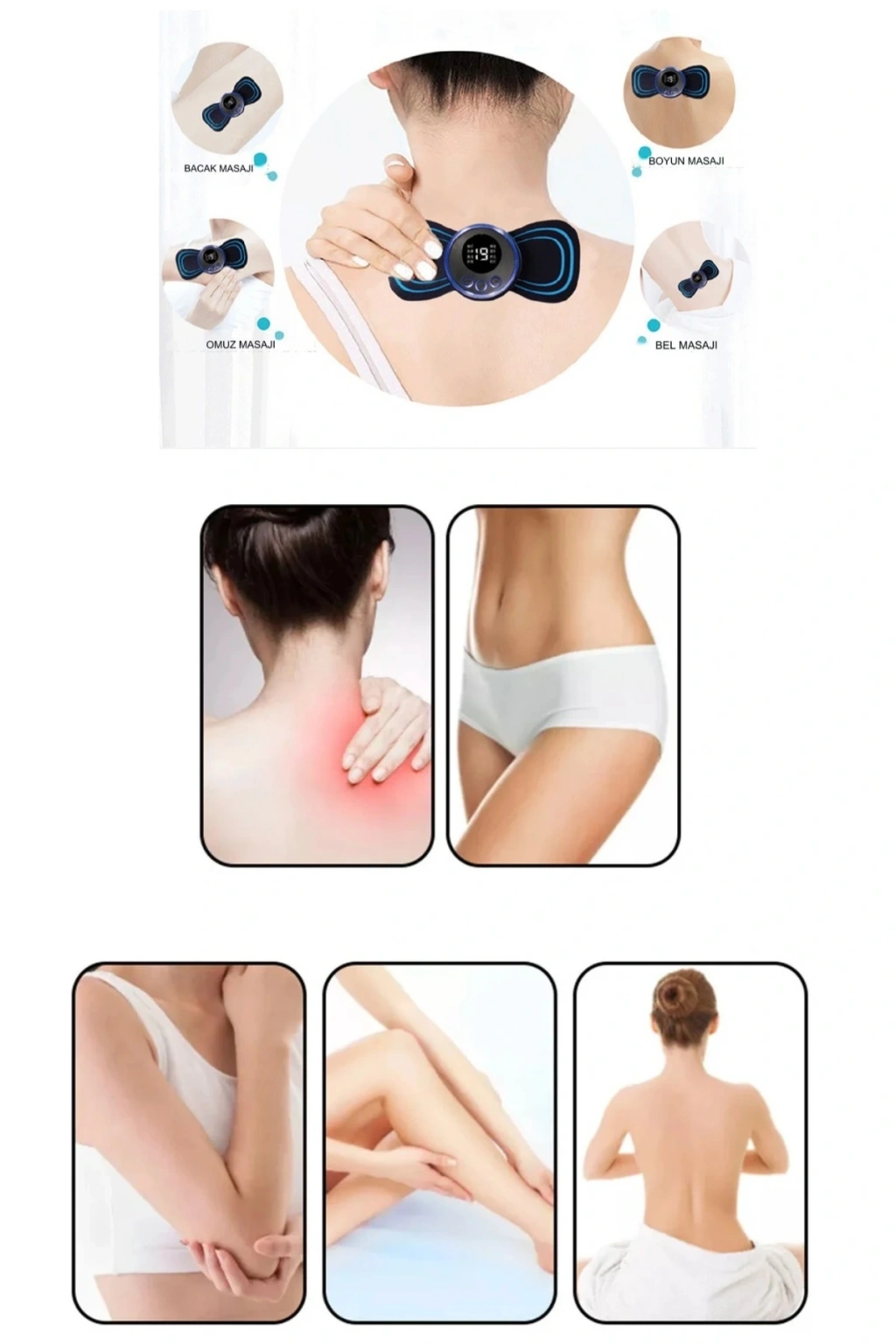 8 Modlu Mini Şarjlı Kelebek LCD Ekran Ems Boyun Omuz Kol Sırt Elektrikli Masaj Bantı Kas Stimülatörü