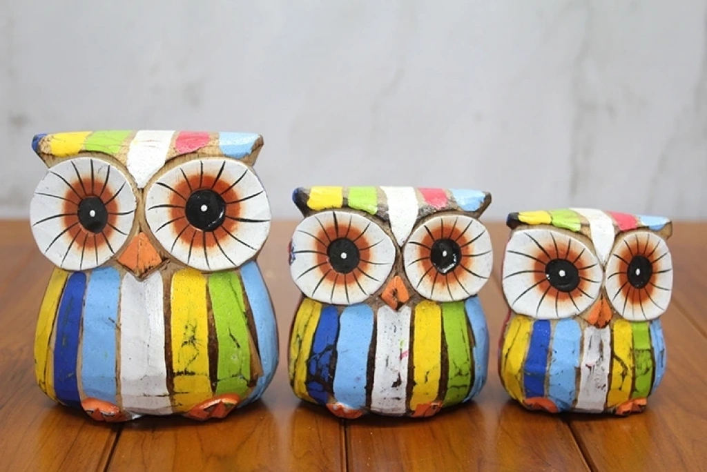 Ahşap 3'lü Baykuş Seti Model 4