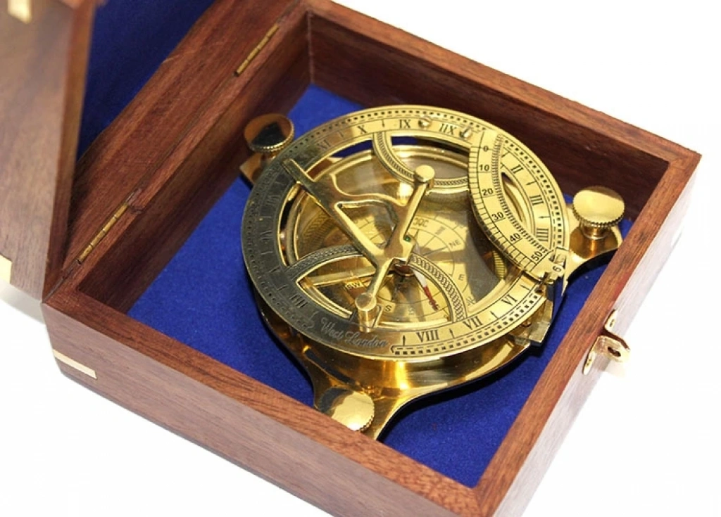 Ahşap Kutulu El Yapımı Pirinç Güneş Saati Ve Pusula 15640