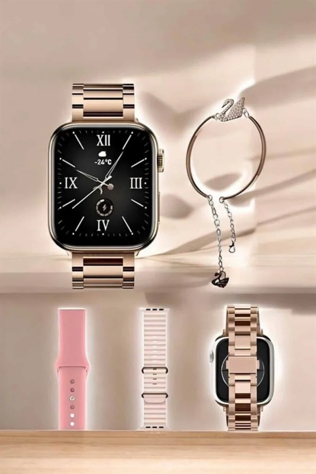 AMOLED Ekranlı Smartwatch – 3 Kordonlu, Kalp Atış & Uyku Takipli Akıllı Saat