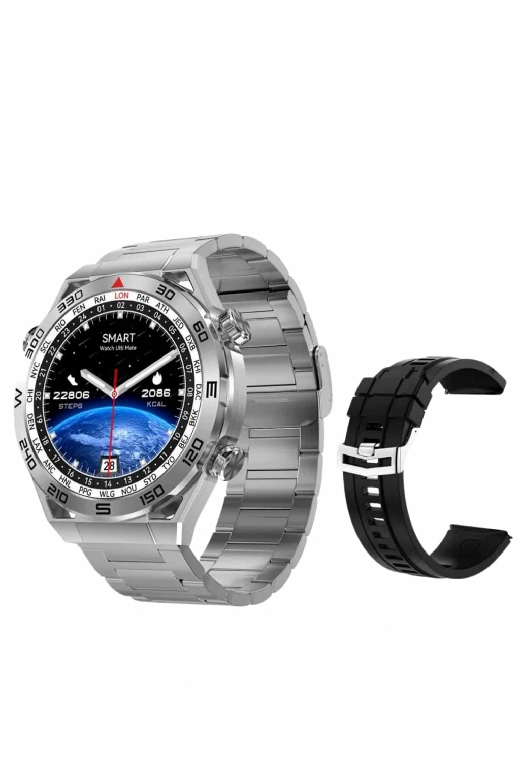 Akıllı Saat Çelik Kordonlu Amoled Ekran Android ve İOS Uyumlu Çağrı Cevaplayabilen