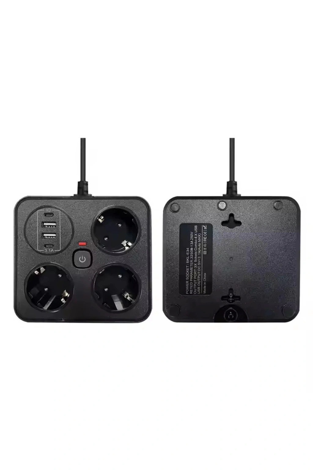 Akım Korumalı 2’li Ayrı Anahtarlı Priz, 2x Priz, 3x Usb, 1x Type-c, 2 Mt Kablo, Hızlı Şarj