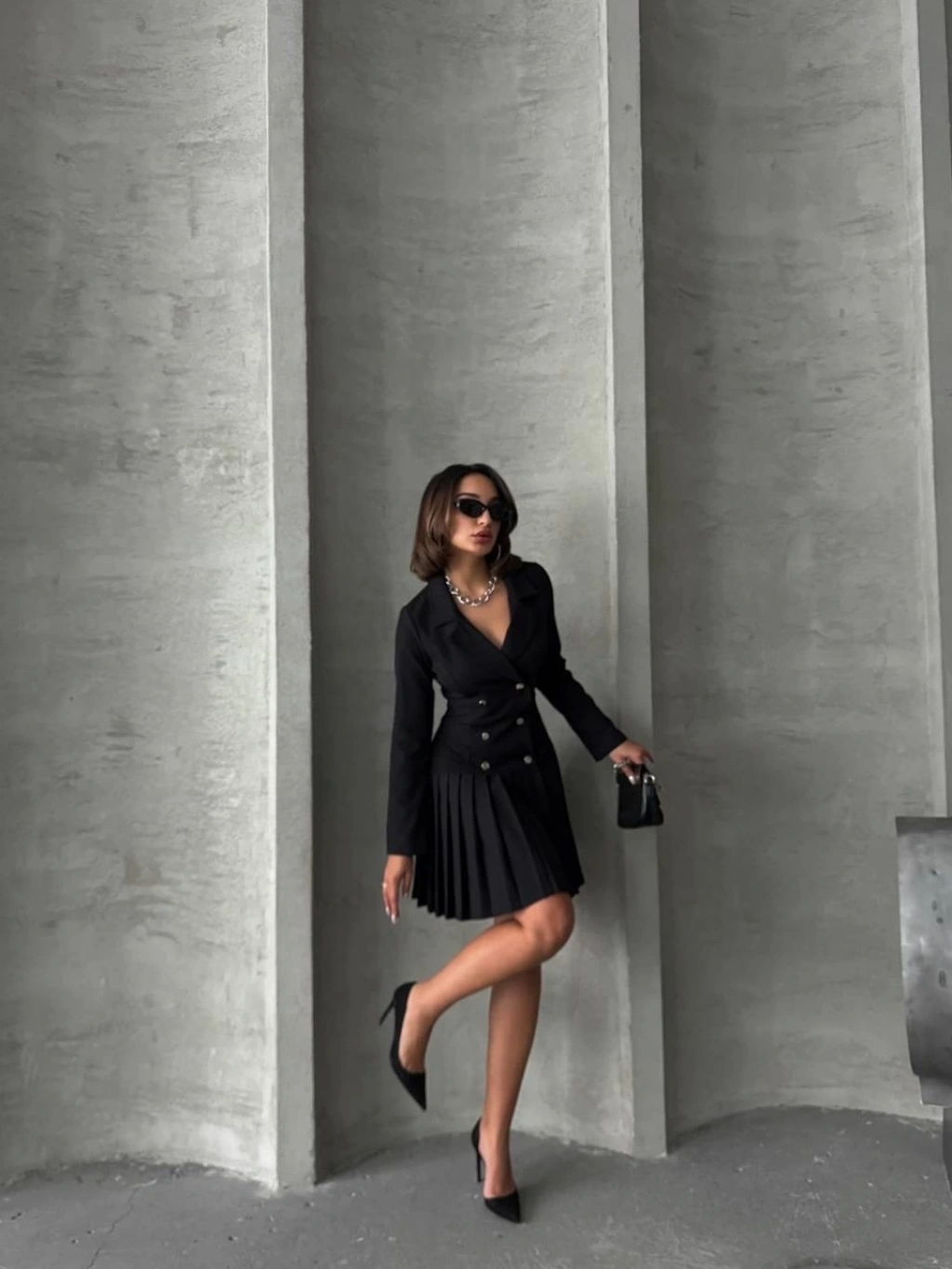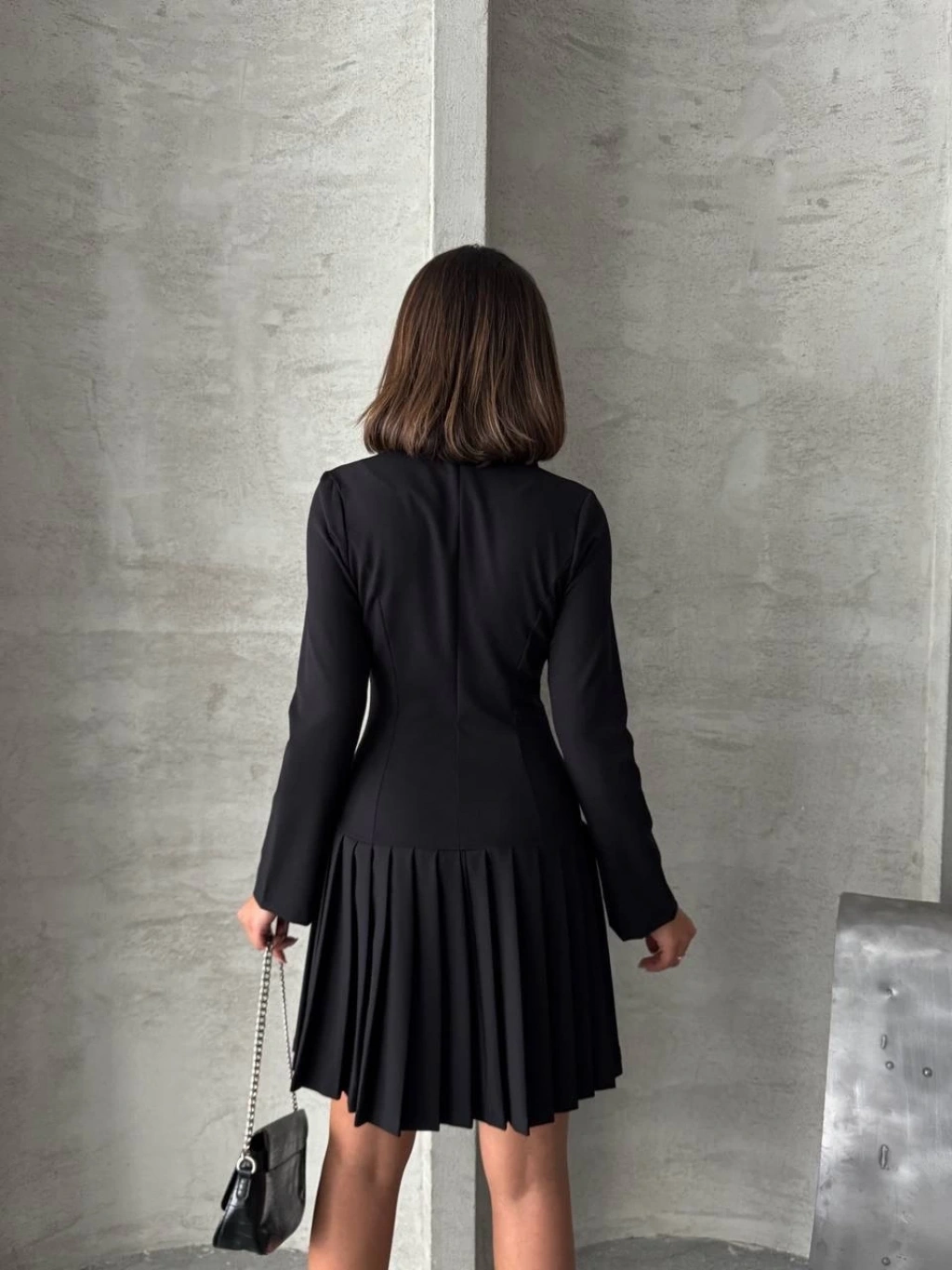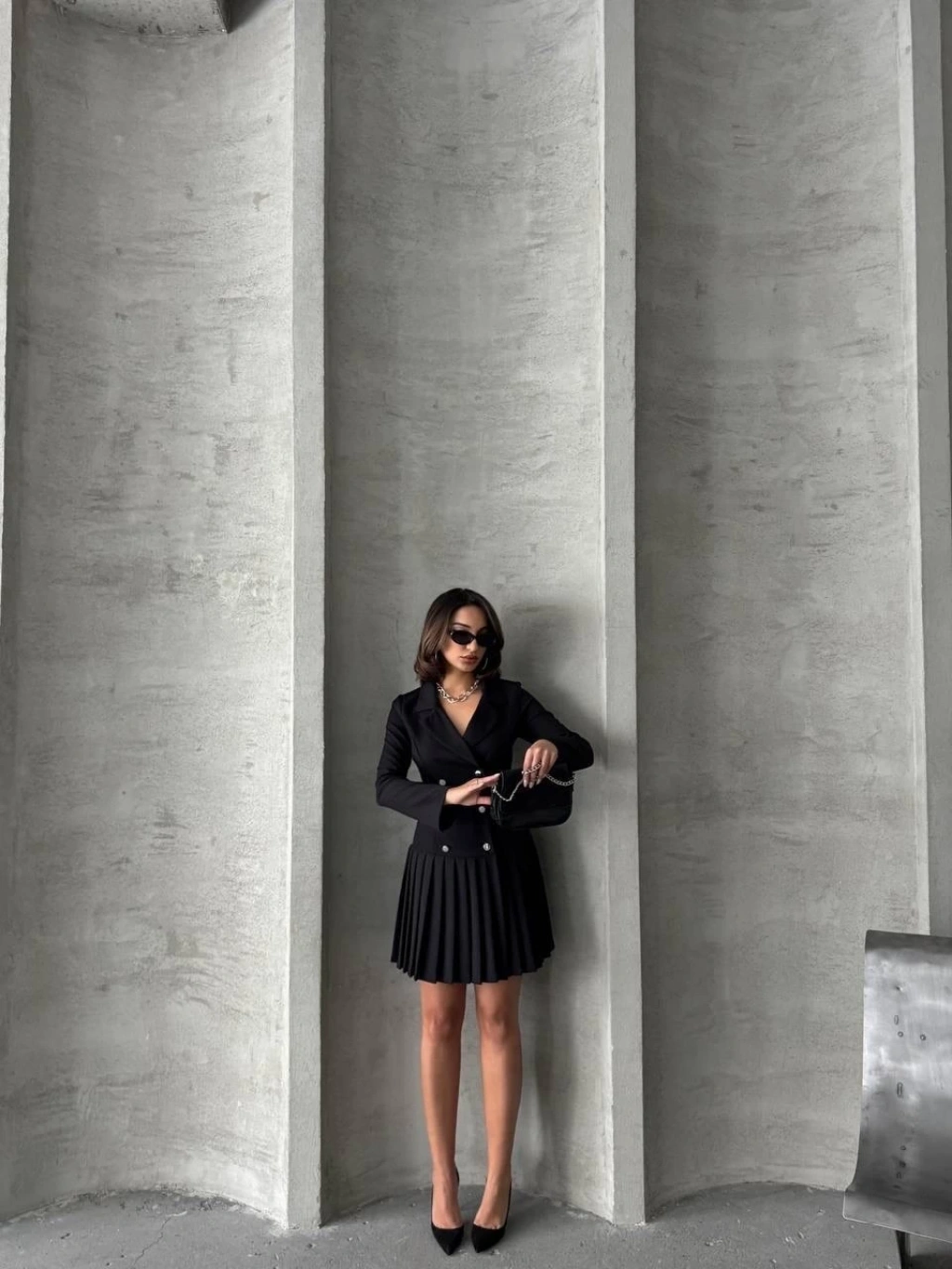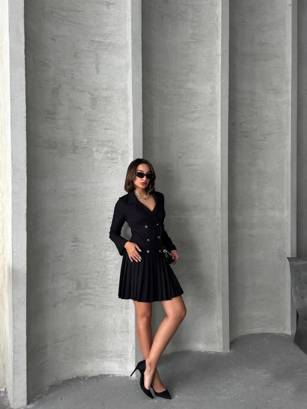 Altı piliseli uzun kollu ceket elbise siyah s255016