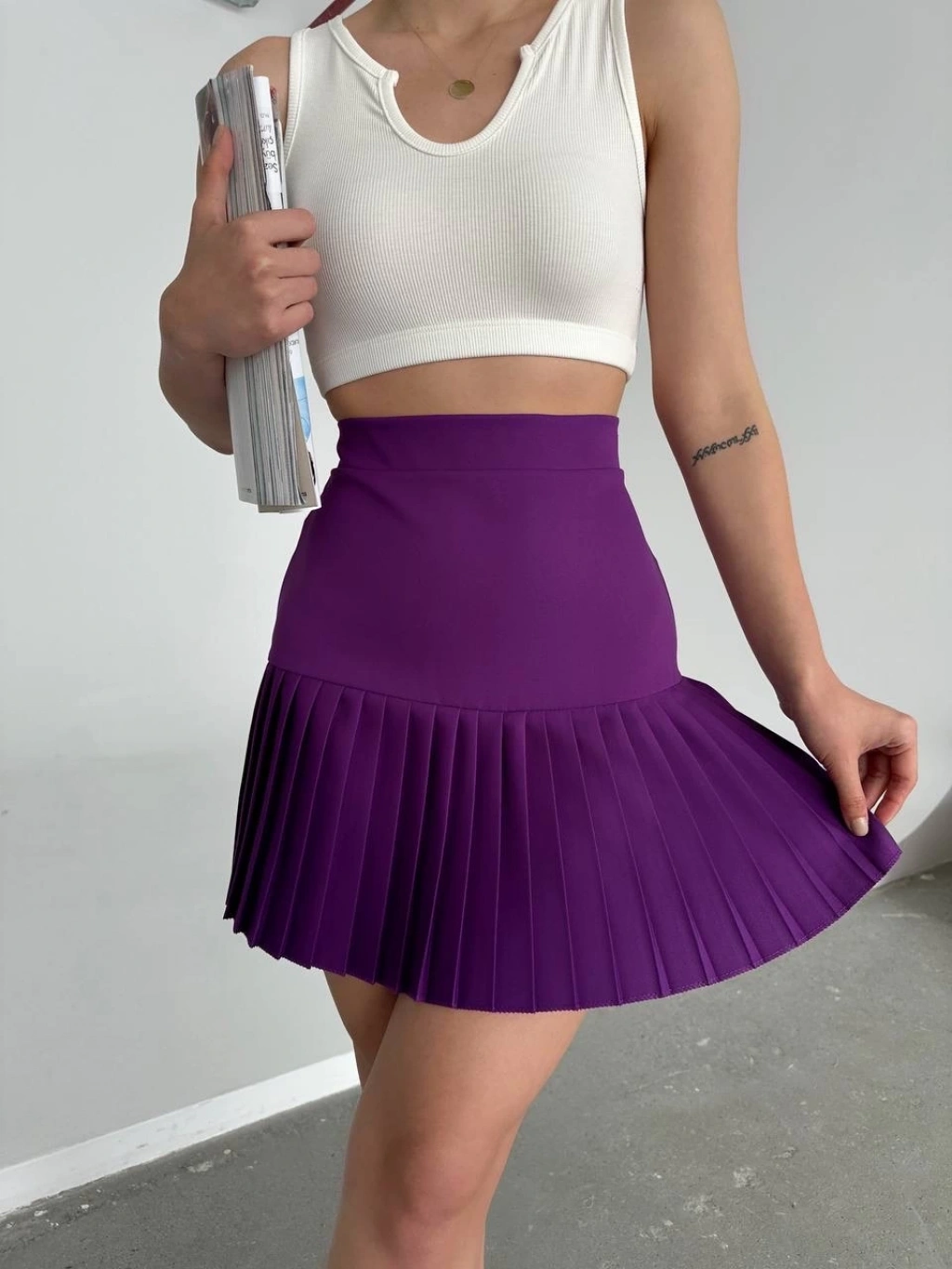 Altı pliseli mini etek Mor s24705