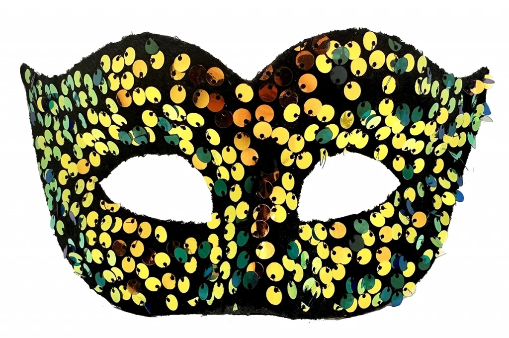 Altın Renk Arkadan Lastikli Pul Payet İşlemeli Balo After Parti Maskesi