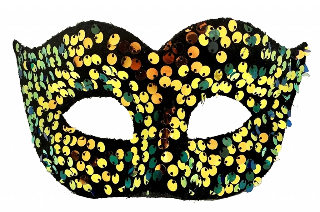 Altın Renk Arkadan Lastikli Pul Payet İşlemeli Balo After Parti Maskesi (5047)