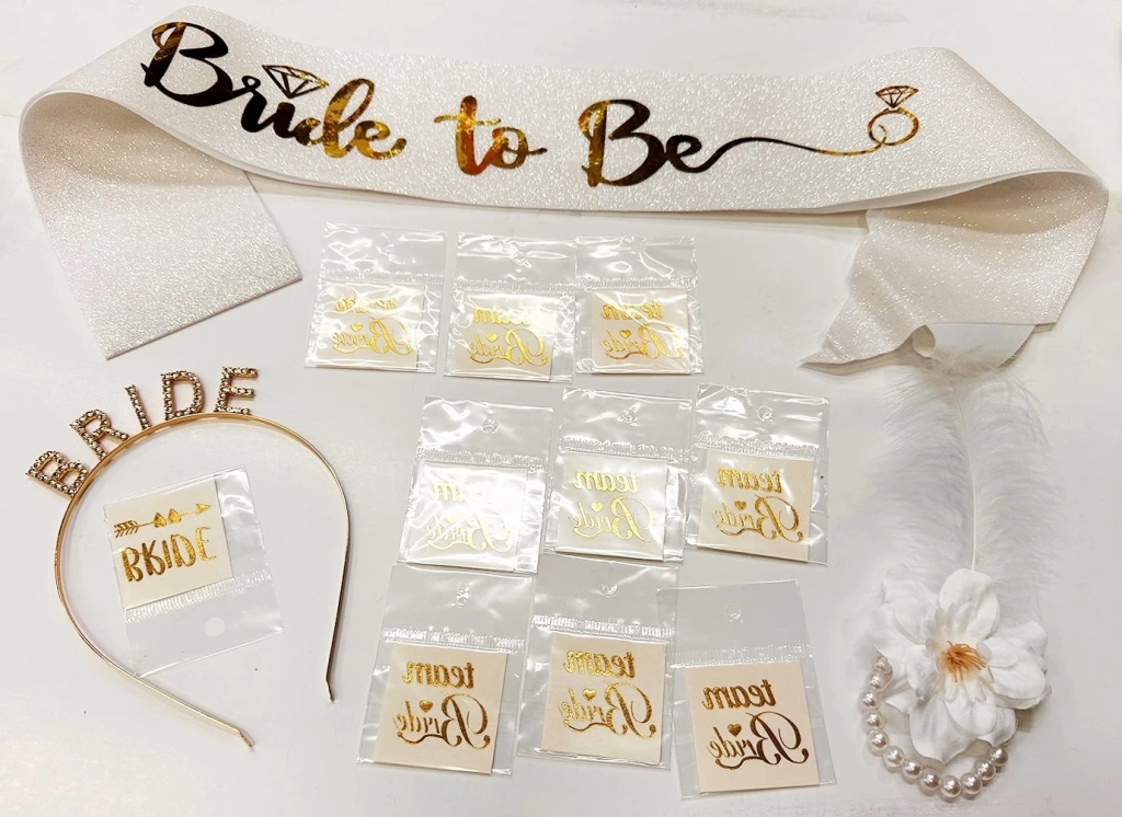 Altın Renk Bride Partisi Taç Kuşak Dövme Bileklik Seti Full 13 Parça