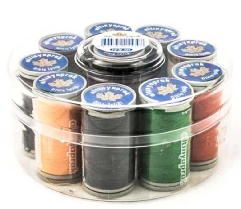 Altın Yaprak Dikiş İpliği Seti 10'lu Yuvarlak Kutulu