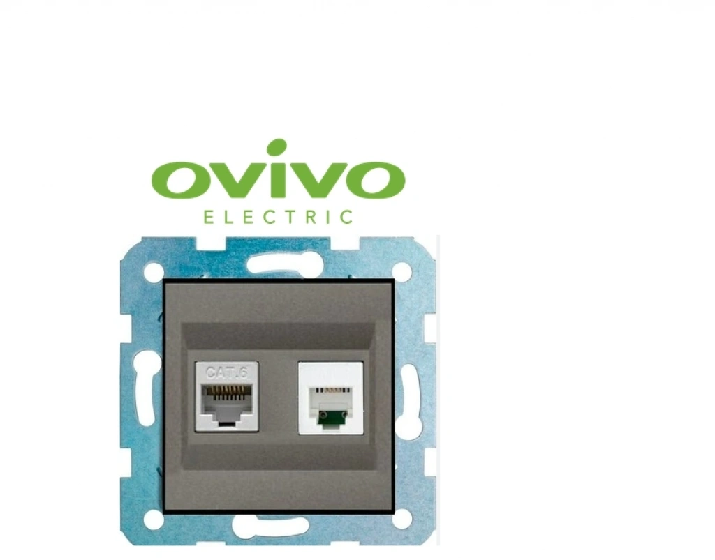 Antrasit Data Pirizi Jaksız CAT6 Çerçevesiz Grano - Priz ve Anahtar İçin Uyumlu Çerçeve
