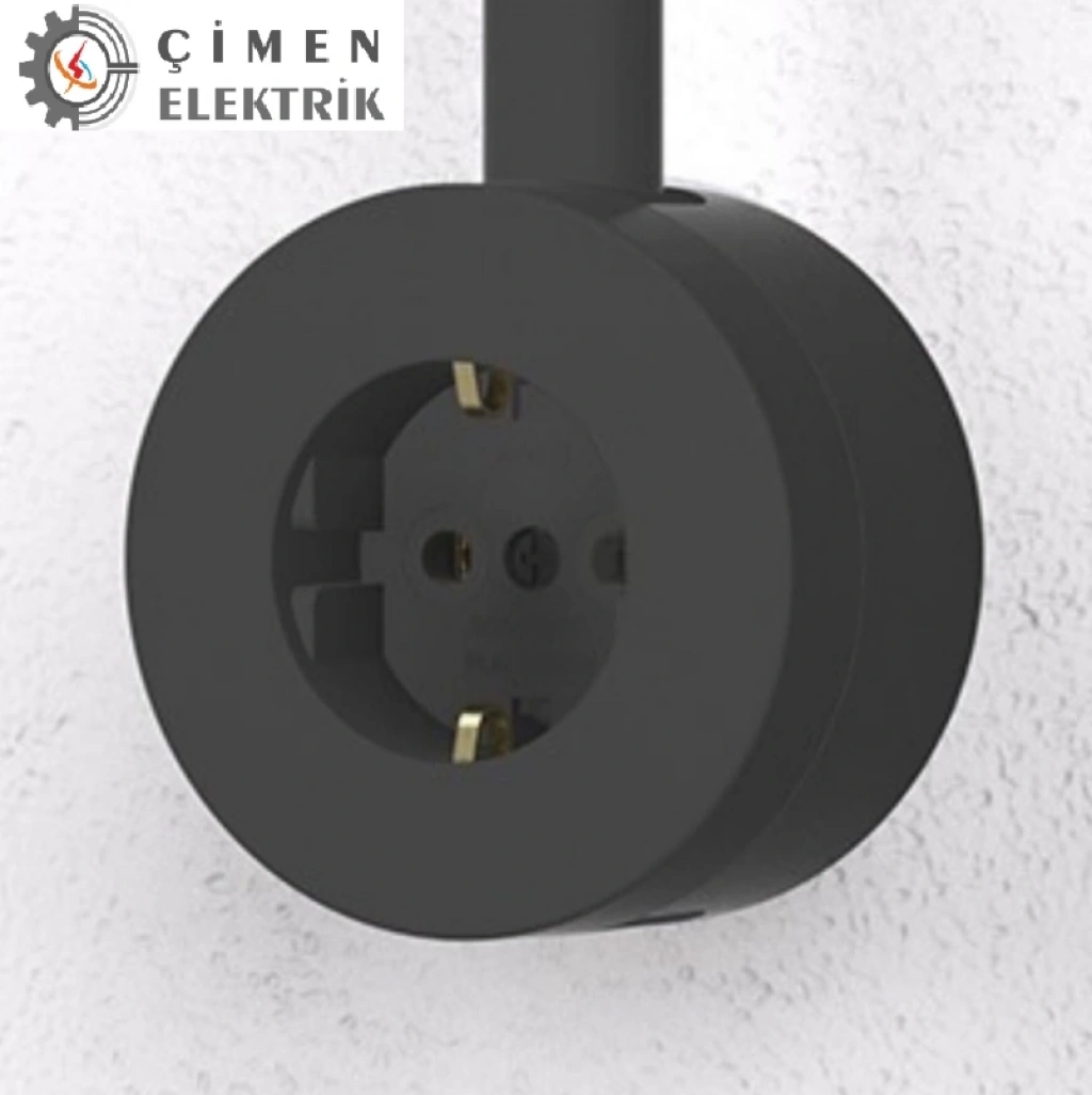 Antrasit Renk İkili Topraklı Priz – Modern Sıva Üstü Duvar Prizi, Lüks Dekoratif Elektrik Priz Çift Girişli