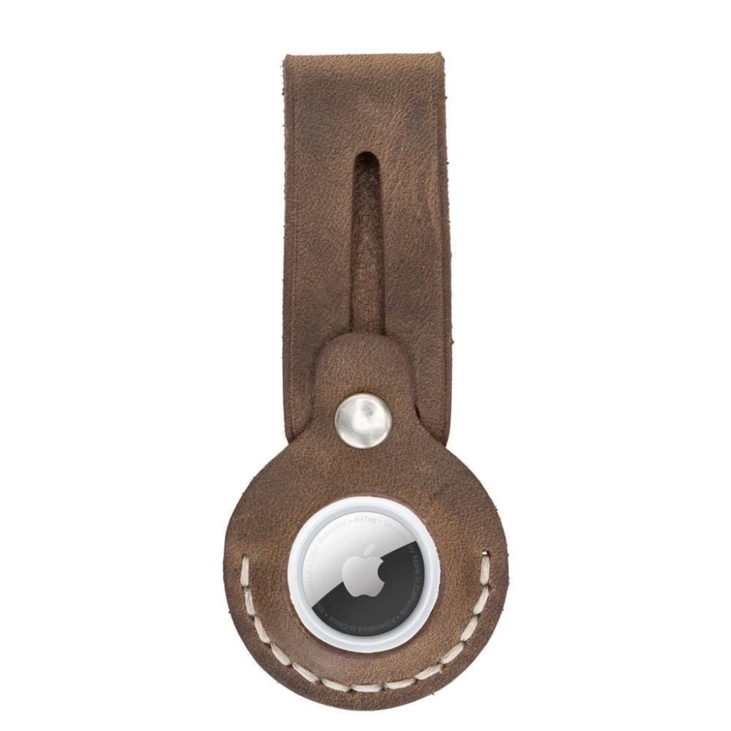 Apple AirTag Uyumlu Deri Anahtarlık, LEO NE Kahve