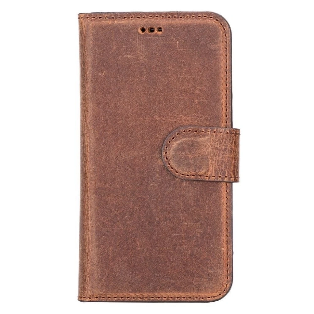Apple iPhone 12 mini Uyumlu Deri Cüzdanlı Kılıf G2 Antik Kahve