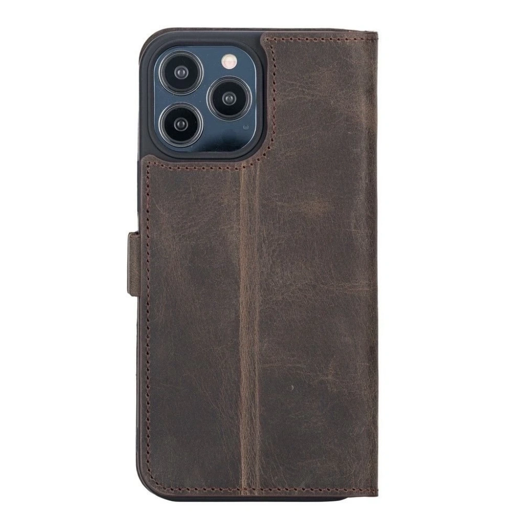 Apple iPhone 13 Pro Max Uyumlu Deri Cüzdanlı Kılıf Acı Kahve