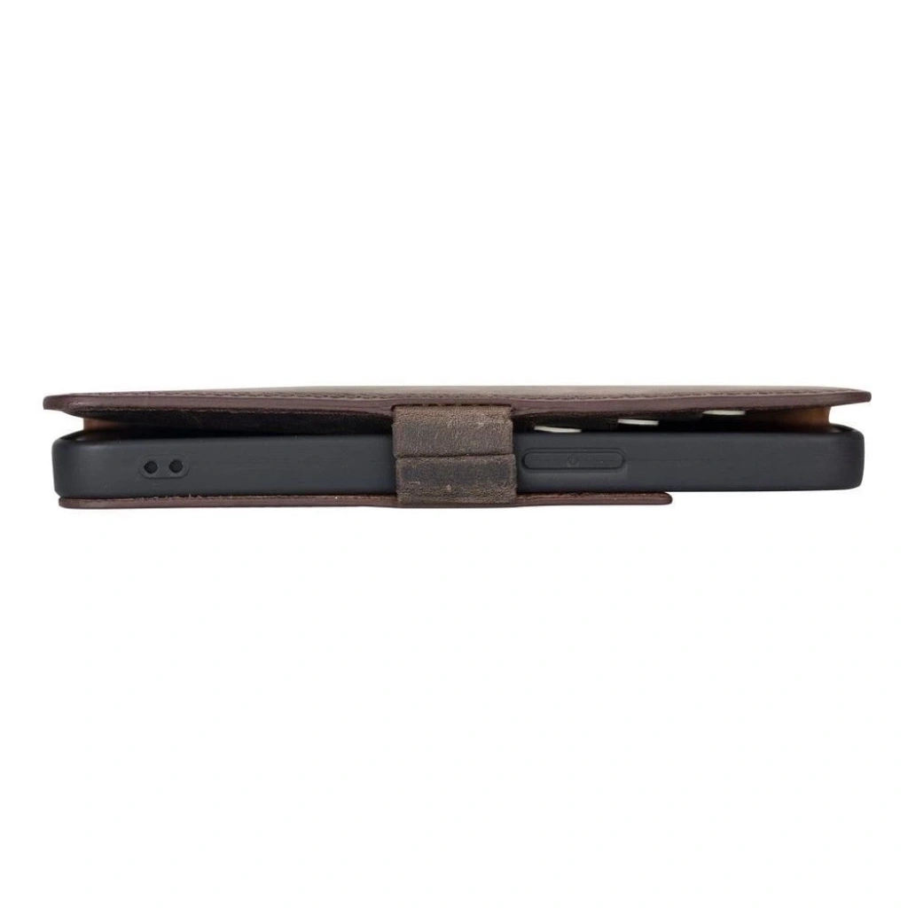 Apple iPhone 13 Pro Uyumlu Deri Cüzdanlı Kılıf Acı Kahve