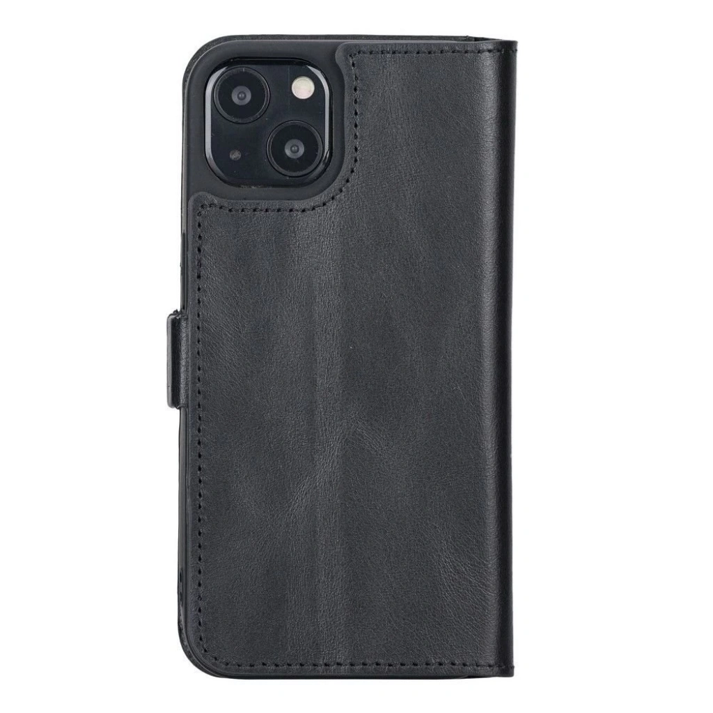 Apple iPhone 13 Uyumlu Deri Cüzdanlı Kılıf Rustik Siyah