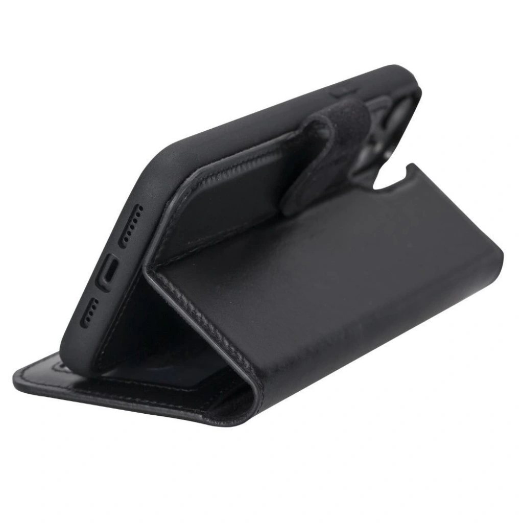 Apple iPhone 15 Pro Max Uyumlu Deri Cüzdanlı Kılıf MWWN RST1 Siyah